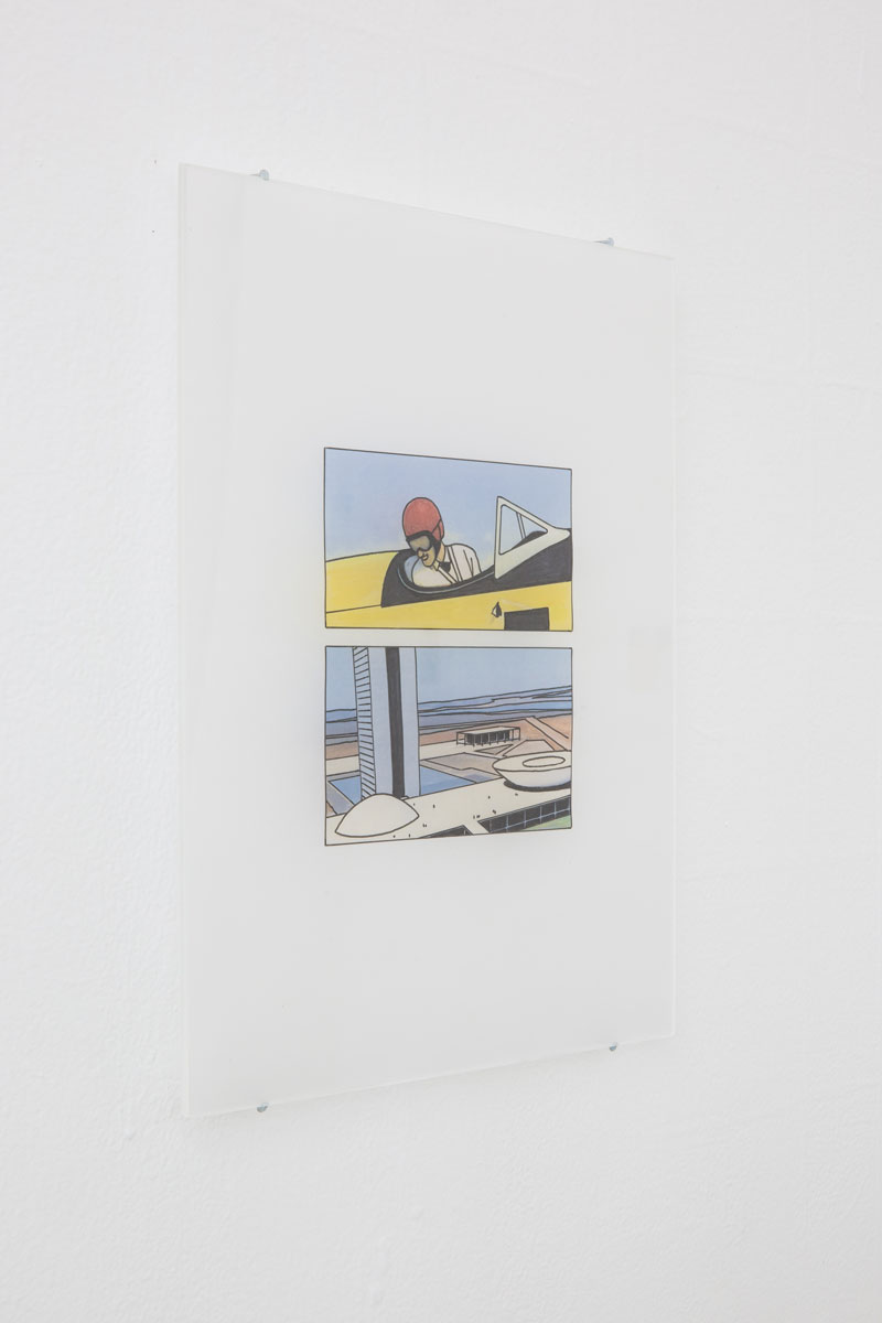 And last but not least, the work Approcher la ligne claire (L’Homme de Rio) consists of a series of drawings based on frames of the French movie L’Homme de Rio (1964), which was filmed in the nascent Brasilia and features several images of Oscar Niemeyer’s architecture. The drawings were produced by the artist using the drawing style called La ligne claire – which gives the title to the exhibition. Established by Belgian cartoonist Hergé – the creator of The Adventures of Tintin – in ligne claire all lines must be strong and have the same width, the colors must be vivid and the backgrounds very realistic. Through this work, Tirtiaux creates a parallel between the Brazilian modernist architecture lines and the strong lines of the worldly famous Belgian drawing style.
