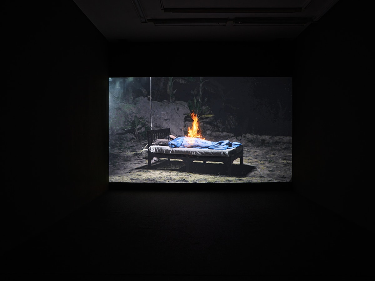 The incomparable sweetness of the gaze that he brings to bear on these beings coexists with the bitterness of Thailand’s political situation, explicitly evoked in several videos. But beyond references to power and the army, it is in the heart of his perceptual question that Apichatpong Weerasethakul’s political gesture is rooted: for him, the camera is capable of illuminating an invisible community, by skimming the surface of reality, the network of forces that flow between beings and things, between the various forms of life (animal, plant, spectral). The technical and spiritual merge at the very core of a single process of revelation, which aims to extend our inner cinema: the ‘projection apparatus’ to which the artist compares the human spirit. Endowed with this ability to probe and foster the invisible, the moving image appears as the refuge of secret connections, a fragile sanctuary that must be preserved from exterior aggressions. The sleepy bodies that populate the videos in the exhibition are intended as the guardians of this virtual memory, switching from dream to dream, to exchange their knowledge and maintain its vitality.1