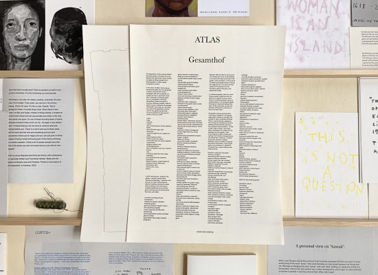The artworks exist independently. Their place in the gallery makes various constellations and relations visible. Together they create an atlas of different perspectives on photography and visual culture, with overlapping thoughts and visions.