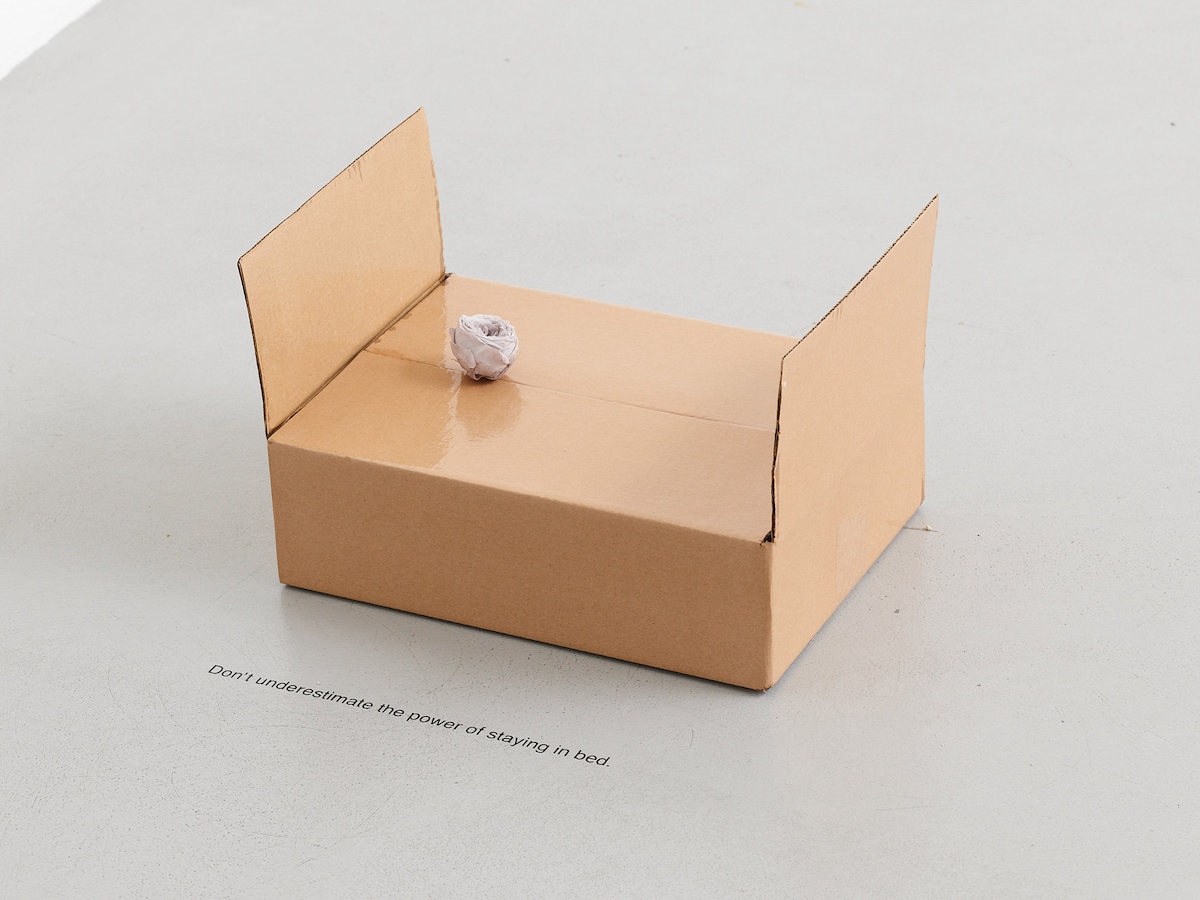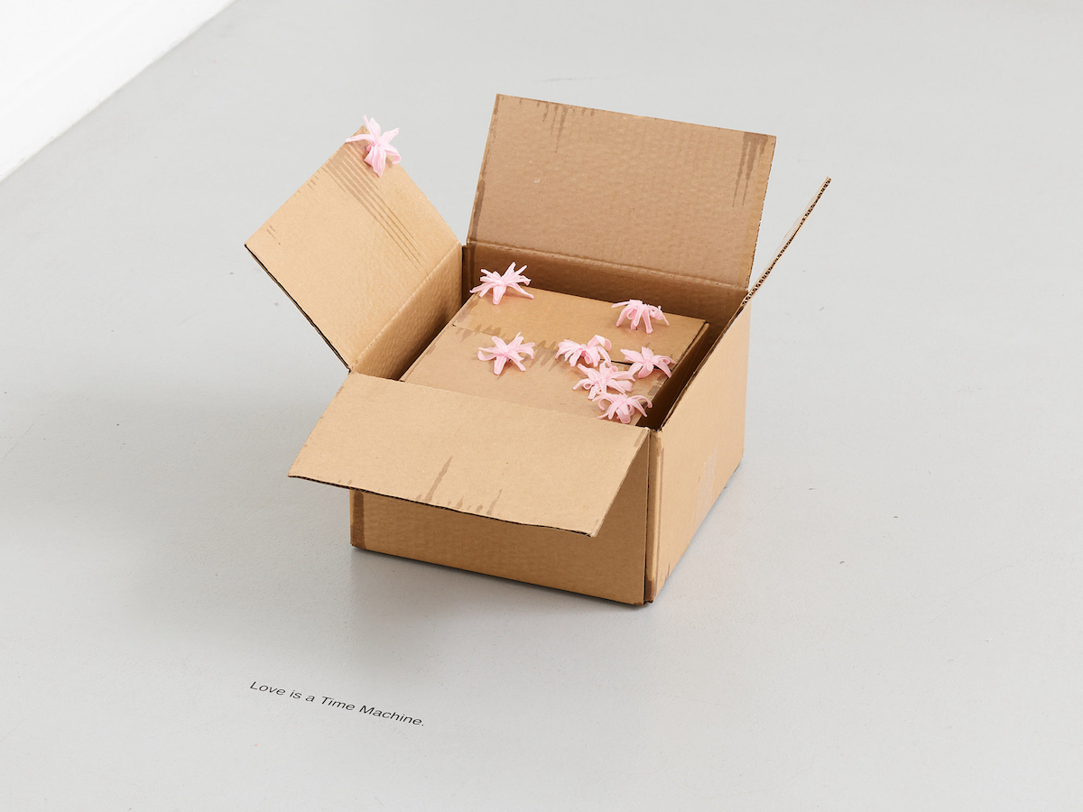 As part of her exhibition project at the Centre d’édition contemporaine, Gina Folly will be producing an edition, a series of bouquets of preserved flowers presented in cardboard boxes coated with a varnish that protects against humidity and makes the boxes shiny. Each box bears an inscription, a very short phrase found randomly on a horoscope application that predicts the day ahead: slightly simplistic aphorisms, advice, judgements or trivial, absurd prophecies, whose meaninglessness and naivety create a poetic or downright comedic effect.