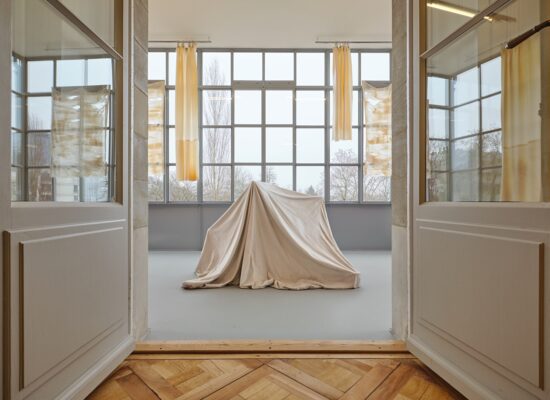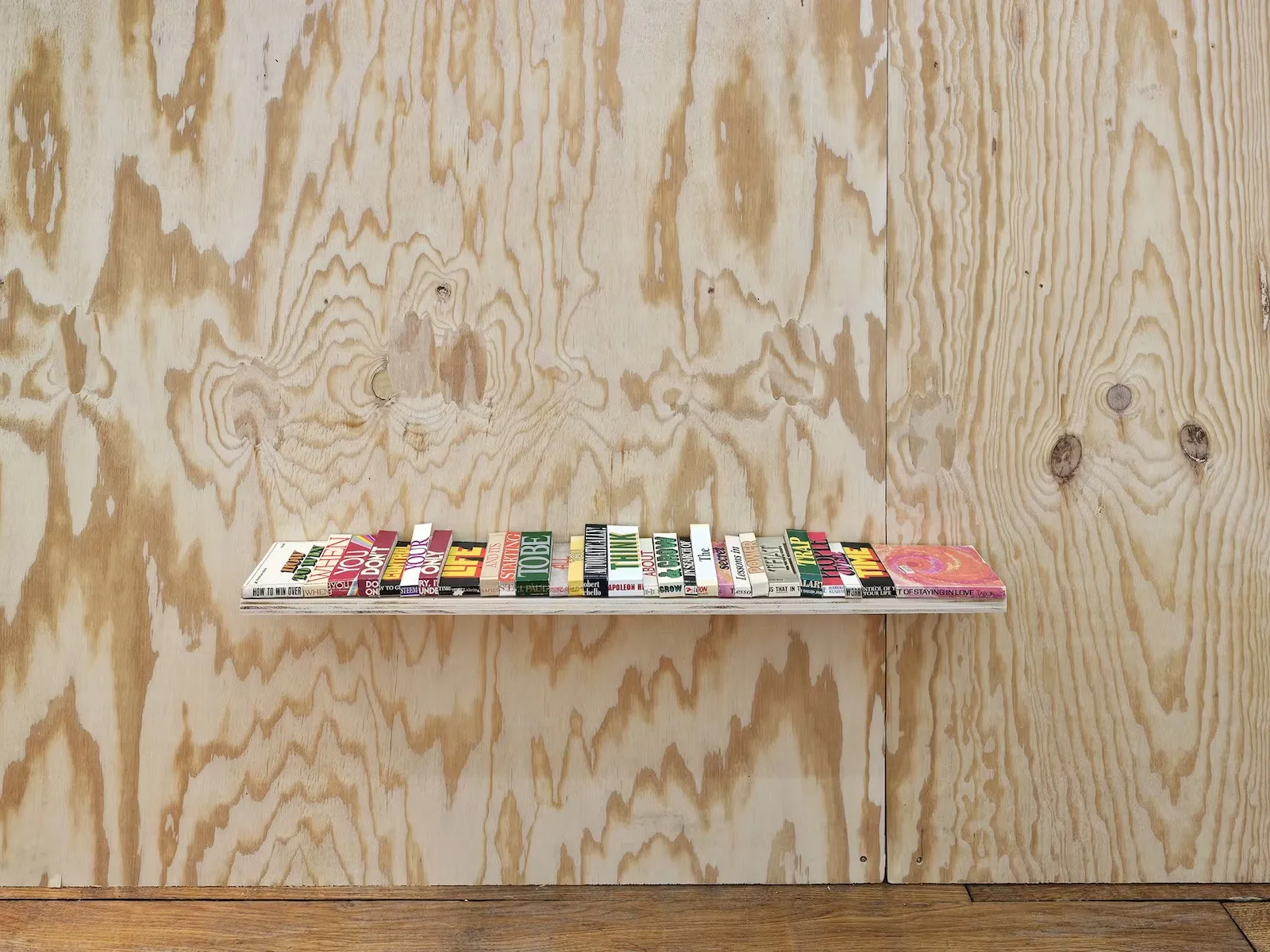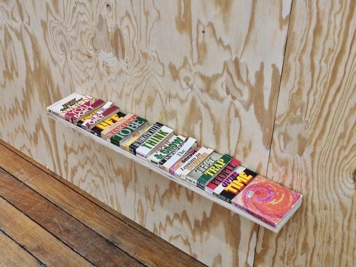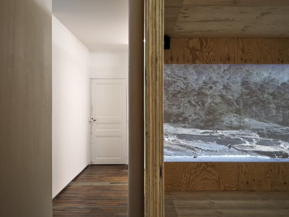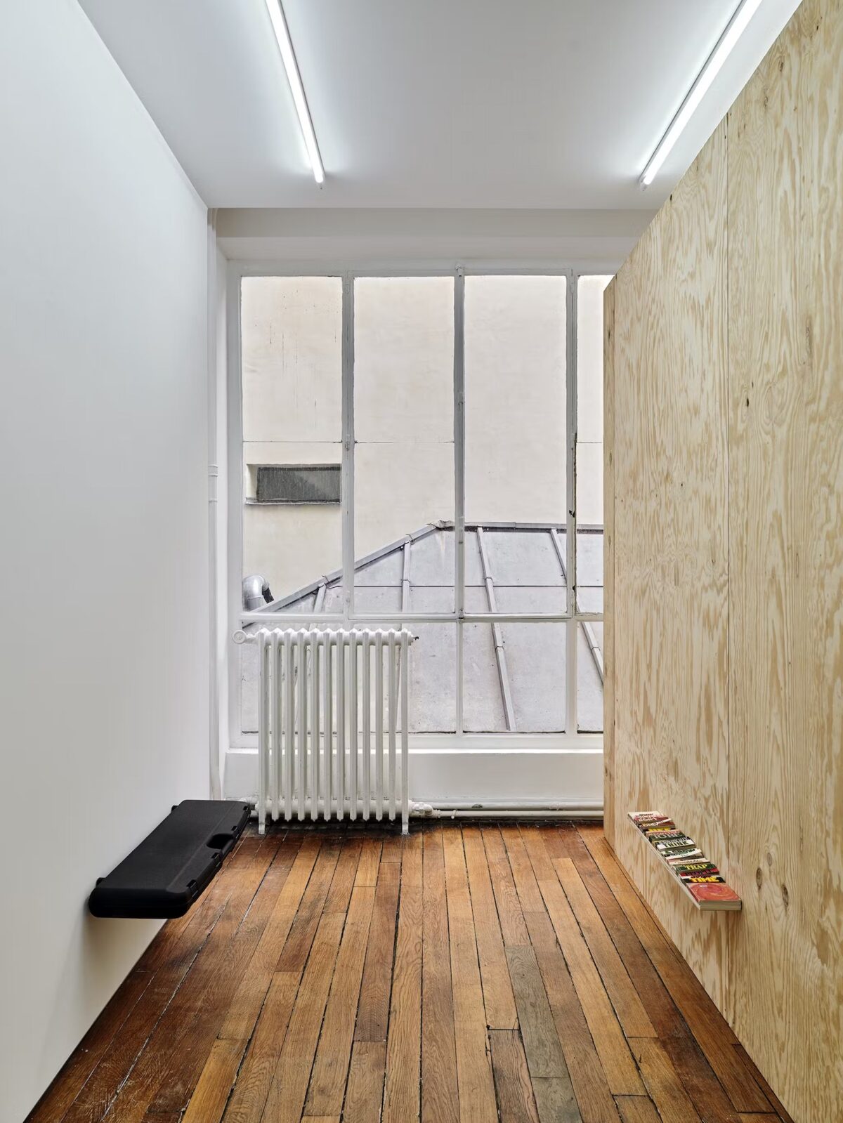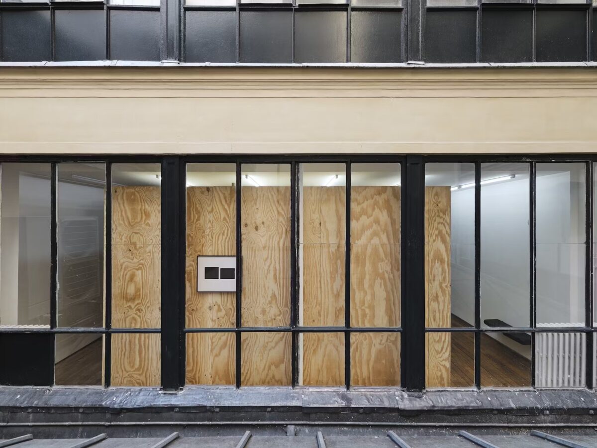 In the narrow space between the plywood’s East wall and the gallery’s large windows, a framed work consisting of two unfixed Cibachrome prints hangs. Visitors can view only its profile but never see it in full. For the duration of the exhibition, the sun washes over the images, slowly fading them. By the time the Spring Equinox arrives—March 20, 2025, at 10:01 AM GMT (the halfway point of the show’s run)—no image will remain. The dissolved image becomes an offering to the Sun (God) who, in Egypt, recedes into the horizon directly behind the body of the Great Sphinx.