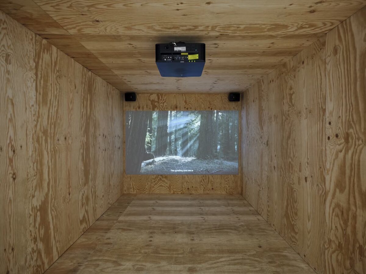 For The Sphinx (2025), Garden has been hired by a wealthy buyer in Big Sur, California as the courier to deliver a slave chain sold from the Facebook Marketplace of Roy Hoffman, continuing Garden and Hoffman’s working relationship which began in early 2024. The film’s narration is performed by Emily Bennet, the manager of the buyer’s collection. Her meditative reading is accompanied by a series of imbricating binaural beats that score the film. Multiple frequencies, meant to “relieve pain” or induce “out of body experiences”, crescendo upon the depiction of the chain’s future location in the buyer’s home.