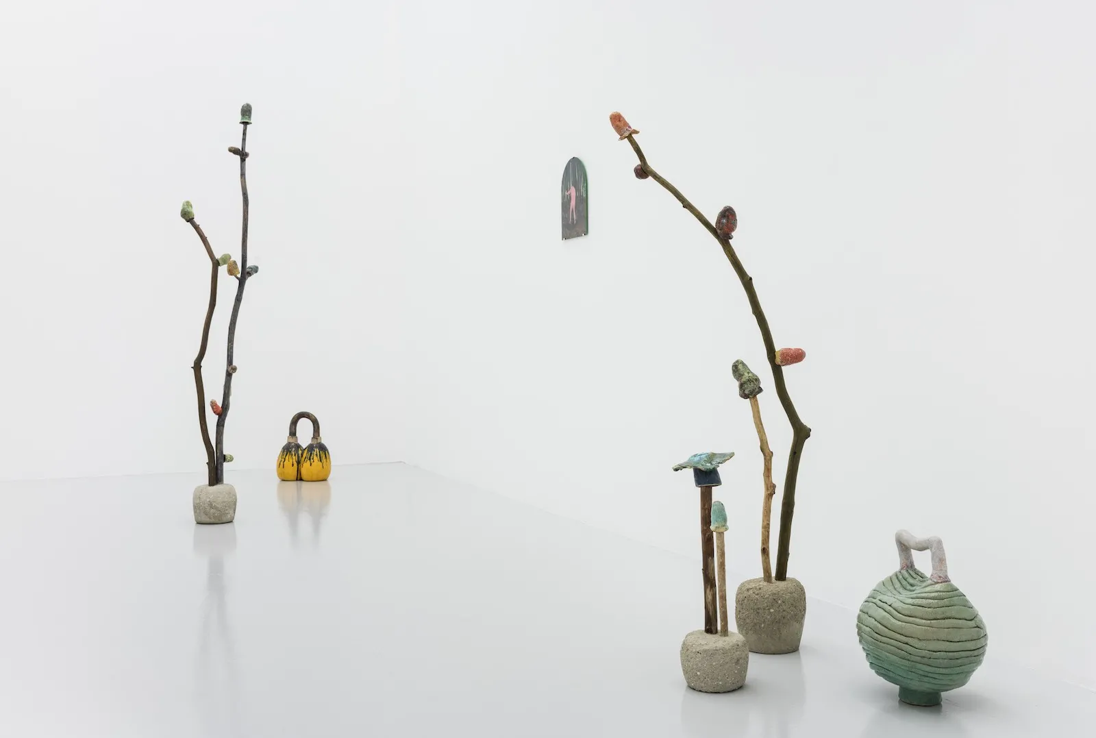 At the center of the exhibition are Fragile Egos—sculptural, mushroom-like objects whose delicate branches and brittle concrete bases convey a sense of instability. The gaze wavers between organic growth and parasitic proliferation. Beauty transforms into something disorienting. Everything connects and intertwines, defying clear categories and expectations.