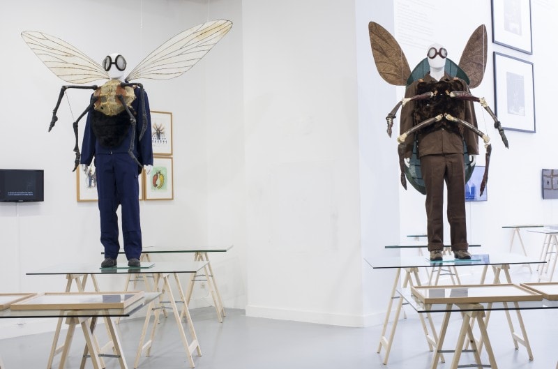 In Stigmata, the presentation has turned into a veritable sea of dozens of tables upon which are collected memories of performances in the most diverse of ways; by means of the objects used Fabre, or the scale models he calls ‘thought models’, as well as drawings, photos and all sorts materials that could be considered of ‘documentary value’. These disparate items regain, in this setup, a great sense of immediacy as the viewer is confronted with ever new impressions through the immediate, physical closeness with the tables and that which is presented upon it.