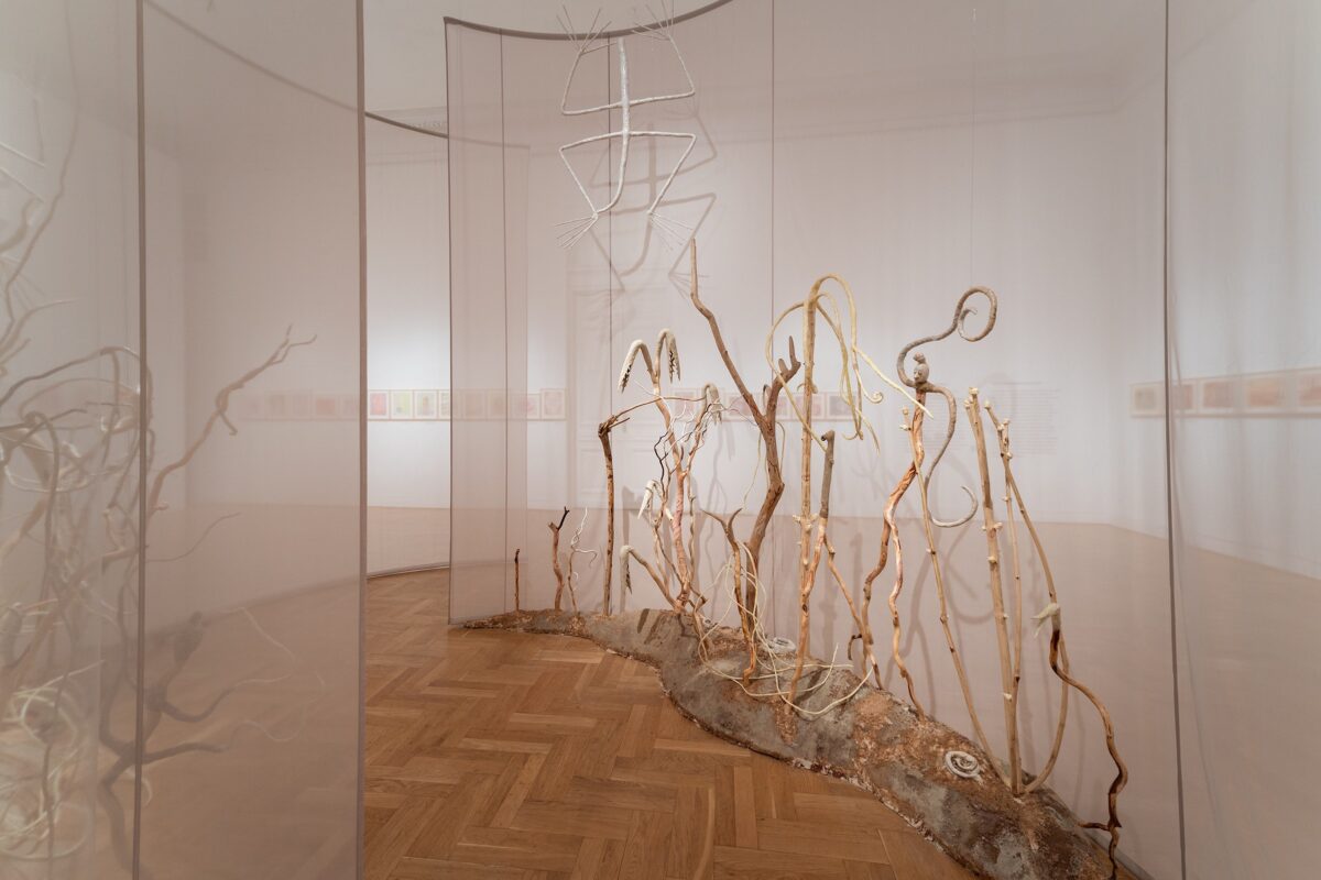 The recurrent motifs of snails and insects are a metaphor for the experience of “inconspicuous persons”, which transcends species, and for their alternative ways of being – quiet, deliberate, and ineffective by common social standards. In weak, helpless, beyond-human beings, the artist finds the figures she needs to talk about her experience as an artist, mother, sister, and daughter, as well as patterns of emancipation.