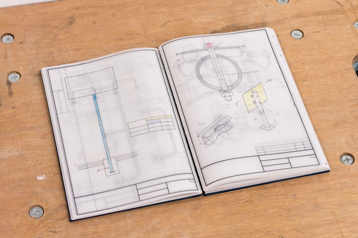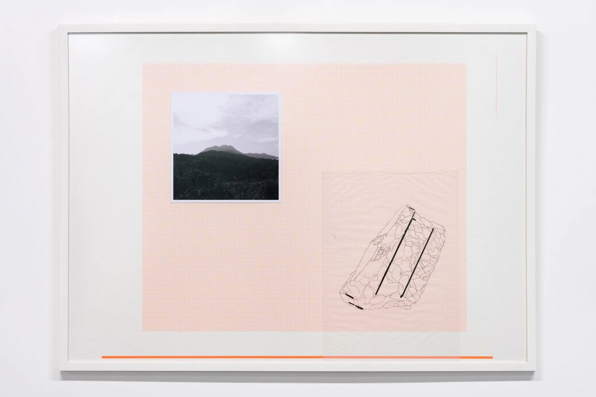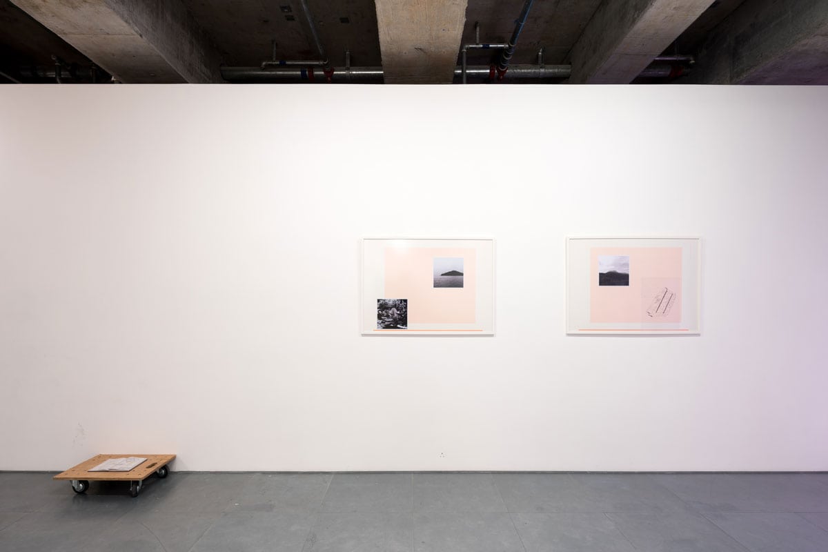 Between the sculptures, a bed of sand creates a non-flat surface for the viewing of the works, engaging visitors to physically engage with the exhibition context. Building on the actuality or fiction of the setting, ‘Studies for a Possible Green Island’ (2016), presents a series of collages on millimetric paper, which combine photographs of different geographic locations, principally Lamma Island, where Paiva lives and travels from daily – with line drawings of items ranging from rocks to debris, all found either on Ilha Verde, Lamma Island or Lichtenberg in Berlin. Centring further on urban environments, ‘The Highways Department Colour Book’ (2016) comprises a collection of the technical drawings required to build and design all the components of Hong Kong’s public spaces. Presented together as a colouring book, some pages of which have been filled out by Paiva but others purposely not, the work lends a playful twist to the defiance of protocol whilst providing an escape, from stress, from contexts, akin to the youthful act of classroom doodling.