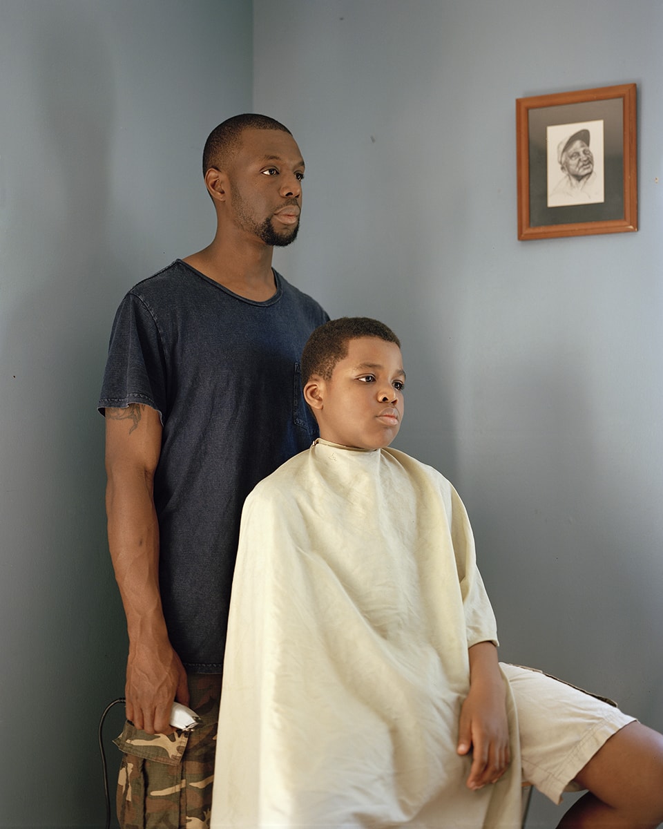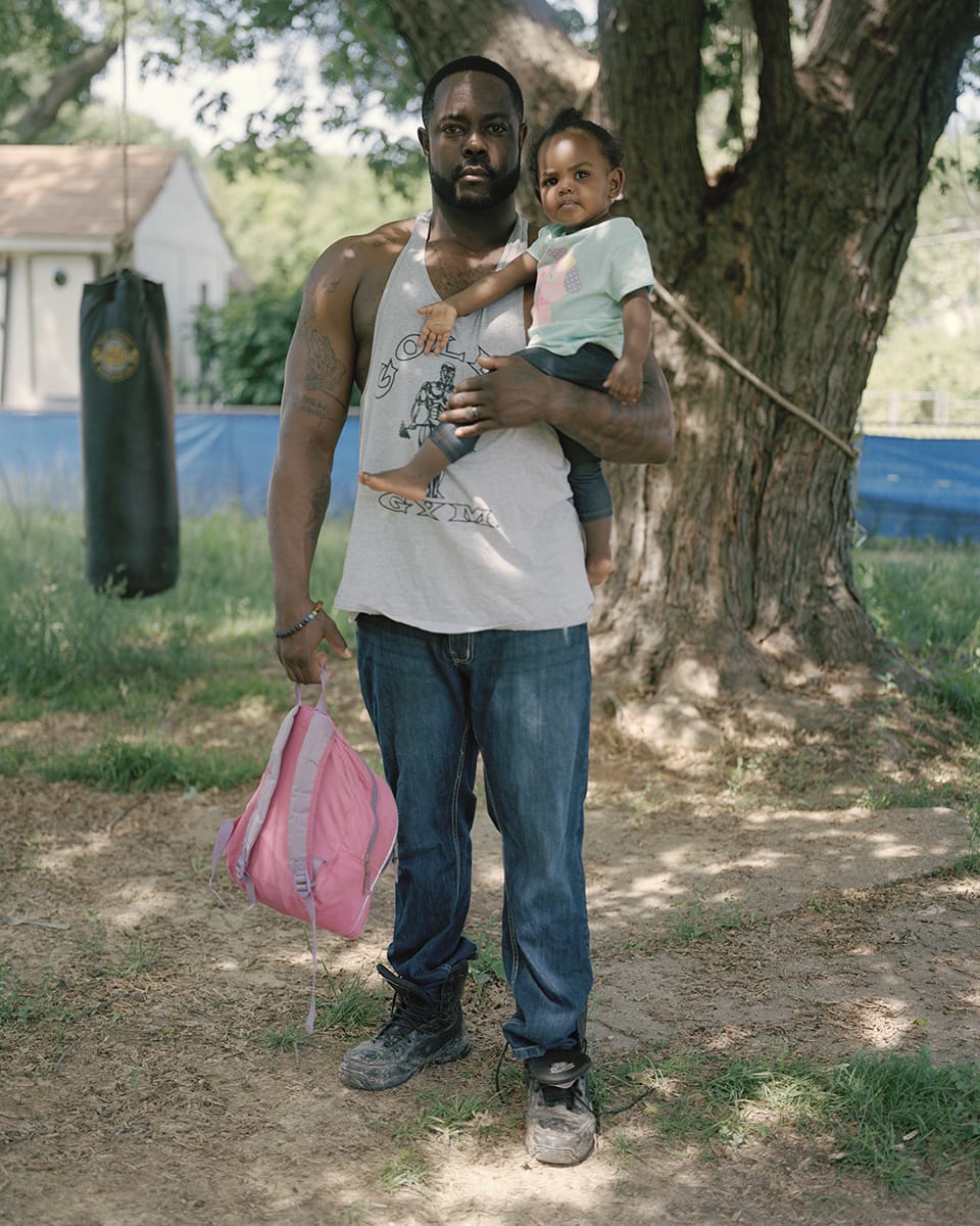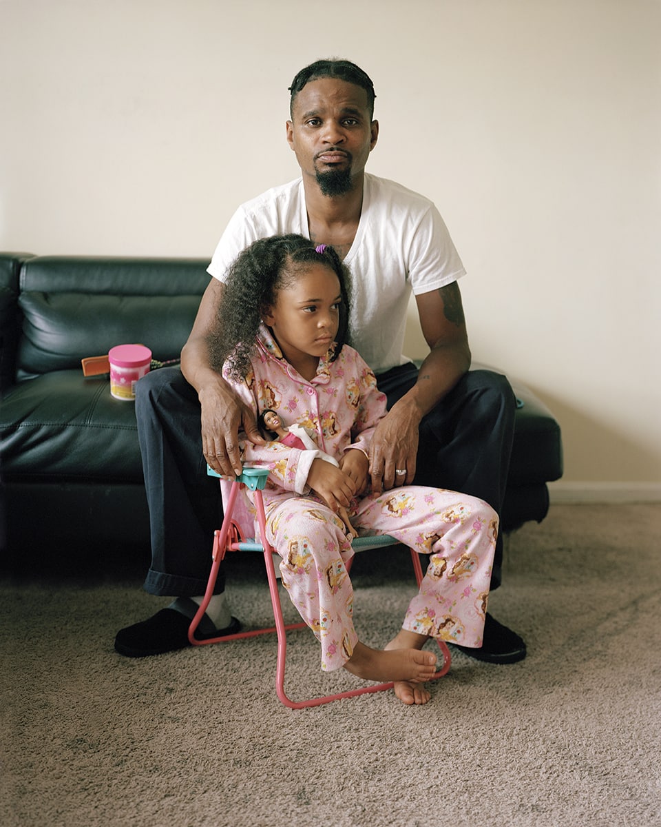 “Fatherhood” (2018) is a series of portraits of recently released fathers with their children and deals with one of the most important interpersonal relationships in the context of the prison experience. The theme of fatherhood is also central to “When Dad Comes Home” (2013), where Cook works with archived photos from his family and friends. What possibilities does the absent father have to build up closeness to his children? What does this closeness look like outside the photo?
