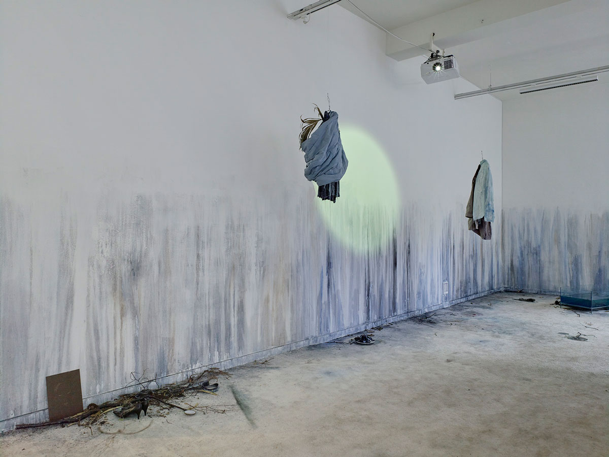 the wet wet wanderer is presented as part of Para | Fictions, a cycle of sustained investigations taking as its focus the relationship between literature and visual art through the practice of ten artists; Daniel Dewar & Grégory Gicquel, Calla Henkel & Max Pitegoff, Mark Geffriaud, Laure Prouvost, Oscar Santillan, Dineo Seshee Bopape, Lucy Skaer and Rayyane Tabet.