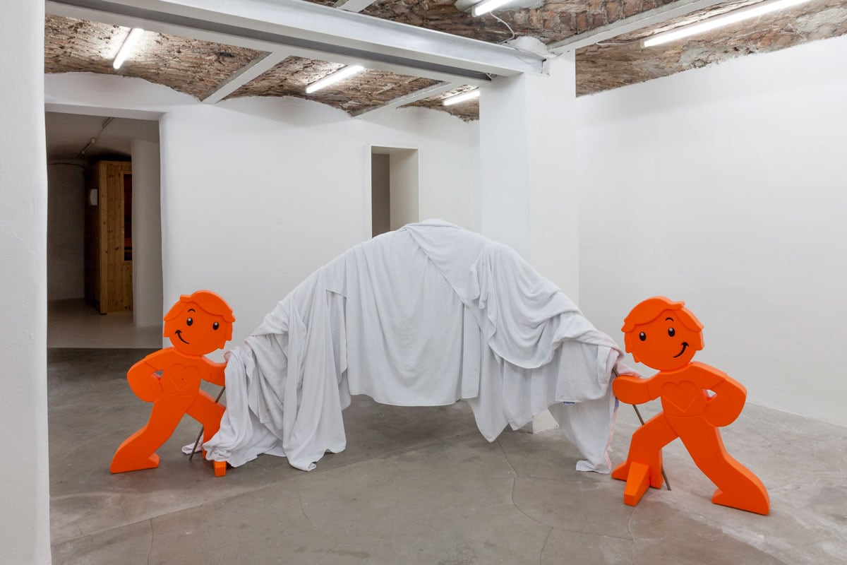 MAIK Alles Gute comprises Marie Jeschke, Raik Zimmermann and the budgie Bubi S., who the group describes as a “birdish position” that is continuously in flow. With the help of an industrial dehumidifier, MAIK Alles Gute accesses multiple areas of service industry, including a mobile phone repair shop, a hairdresser’s, a kindergarten and a home assistance service, drawing out their essence in watery form.