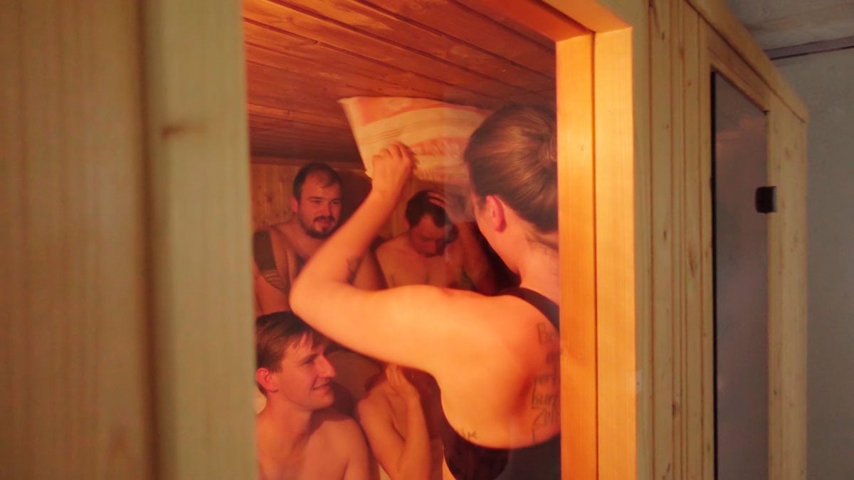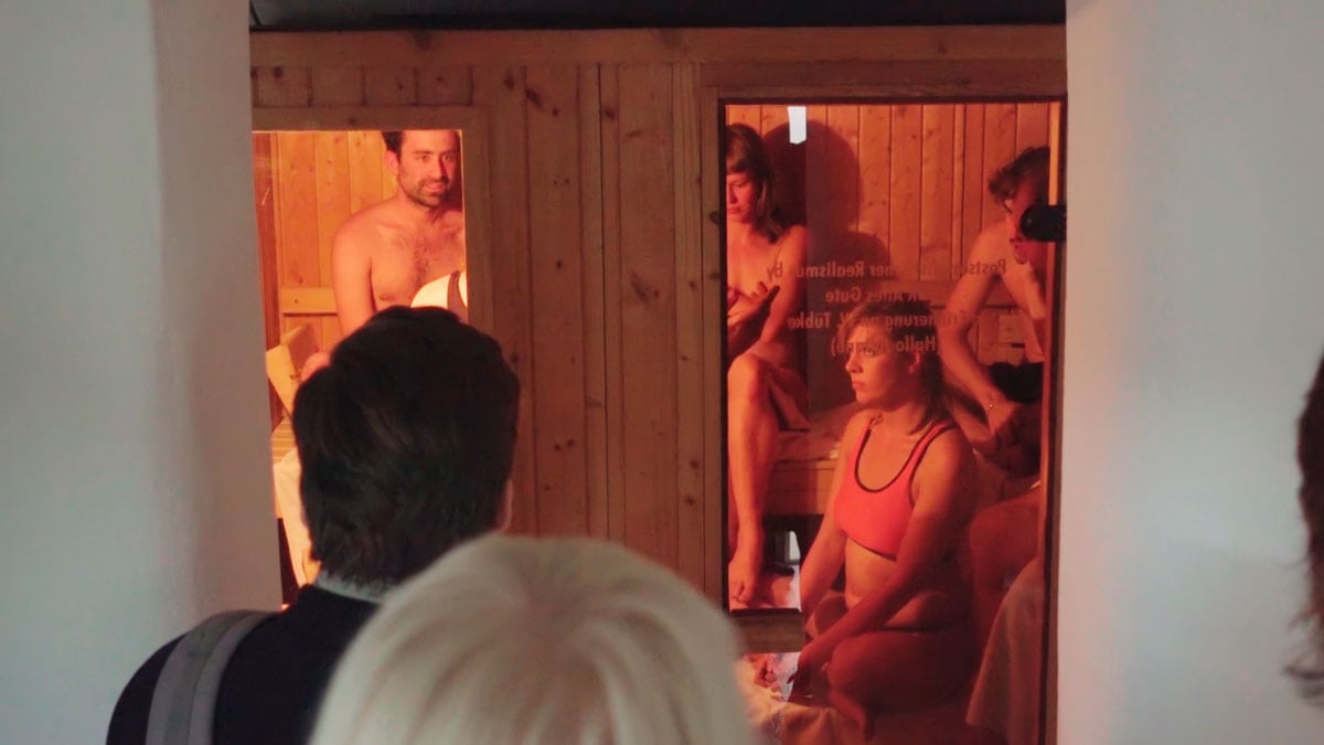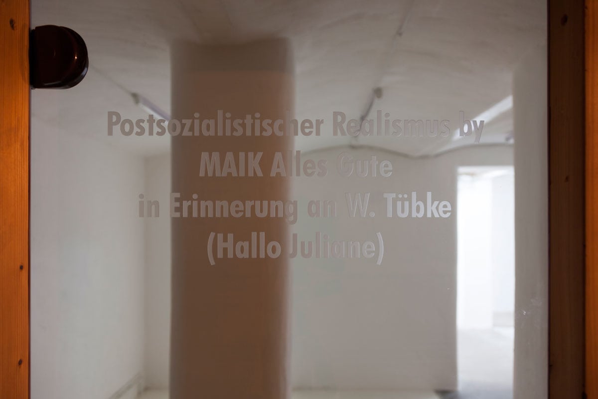 The exhibition title is a re-appropriation of MAIK Alles Gute’s socialisation in the GDR, which forms the catchword “postsocial realism”. They leave behind the pathos of social realism in order to gain a more pragmatic and clearer perspective in a contemporary context of service industry. Where working people might sweat through their labour, these fleeting moments can caught, distilled and made tangible as each infusion is poured over hot stones. The artists thus see their work as a holistic fresco; not plaster and painting, but skin, sweat and steam are combined to form a participatory painting that is taken in by the idle sauna-goers. The towels absorb the sweat both of their owners and the workers from service contexts. These towelremnants will gradually build into an installation in the ‘public’ area of the exhibition.