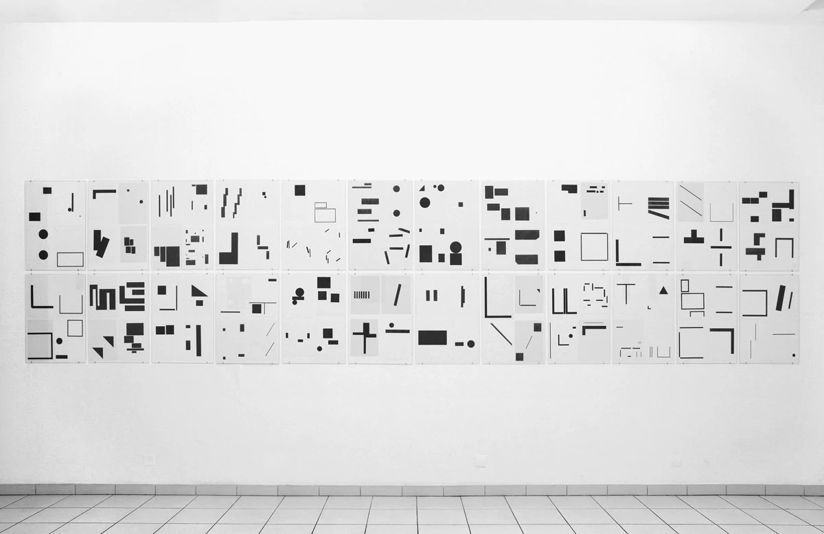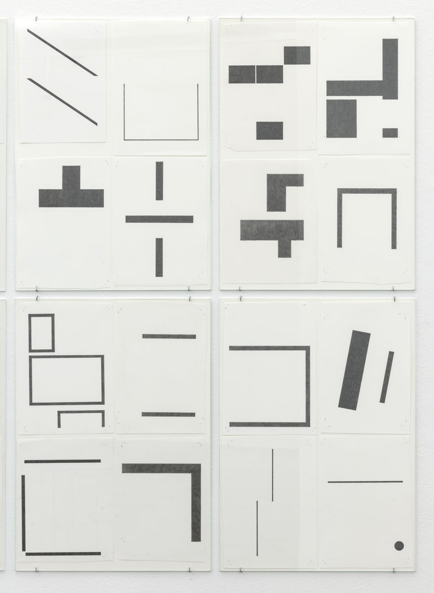 Borrowed space (2017-2019) is a set of 24 drawings by Marc Nagtzaam where he depicts a series of drawn compositions, borrowed from existing book covers, posters, and paintings. One sheet of one of Nagtzaam’s Regular Features series of text drawings is also shown as well as another work, his recent risoprint The Approach. As it is typical in Nagtzaam’s work, the words, the dots, the forms or the lines on them come from an archive that he uses all the time to select different elements from for each new project. Nagtzaam’s work is a combination of control and randomness, somewhere in between thought and emotion. As he states: “in my work I try to create the impression of an open space where nothing is fixed and where the meaning of the work remains open”.