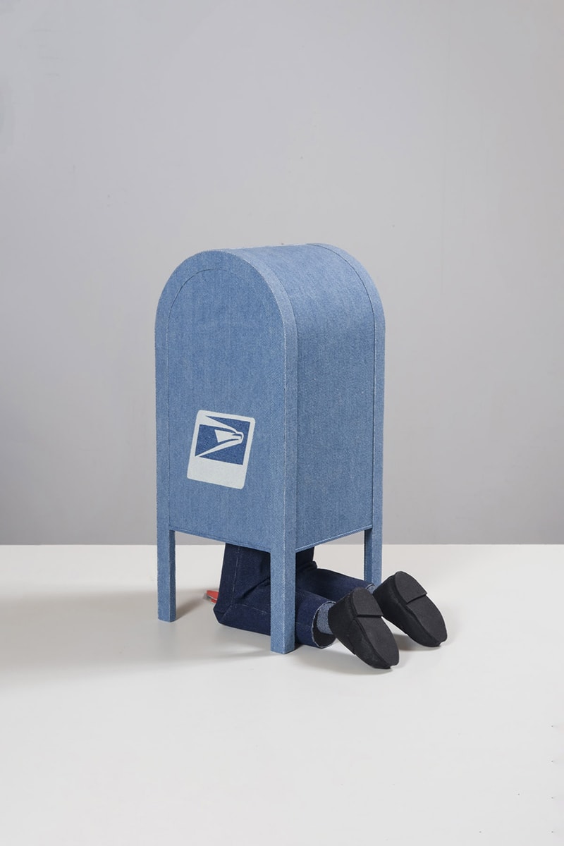 His practice aims to undo American myth-making by its very products— cigarettes, vending machines, urinals—rendered in denim, a signature material for the artist. Denim calls forth a range of associations, from the excesses of the cotton trade as it relates to slave labor to military uniforms to the co-opting of “working clothes” by layabout outsider culture and beyond. Doyle’s critique of American culture, vis-à-vis its objects, stems from the very fiber of their makeup; they destabilize from within.