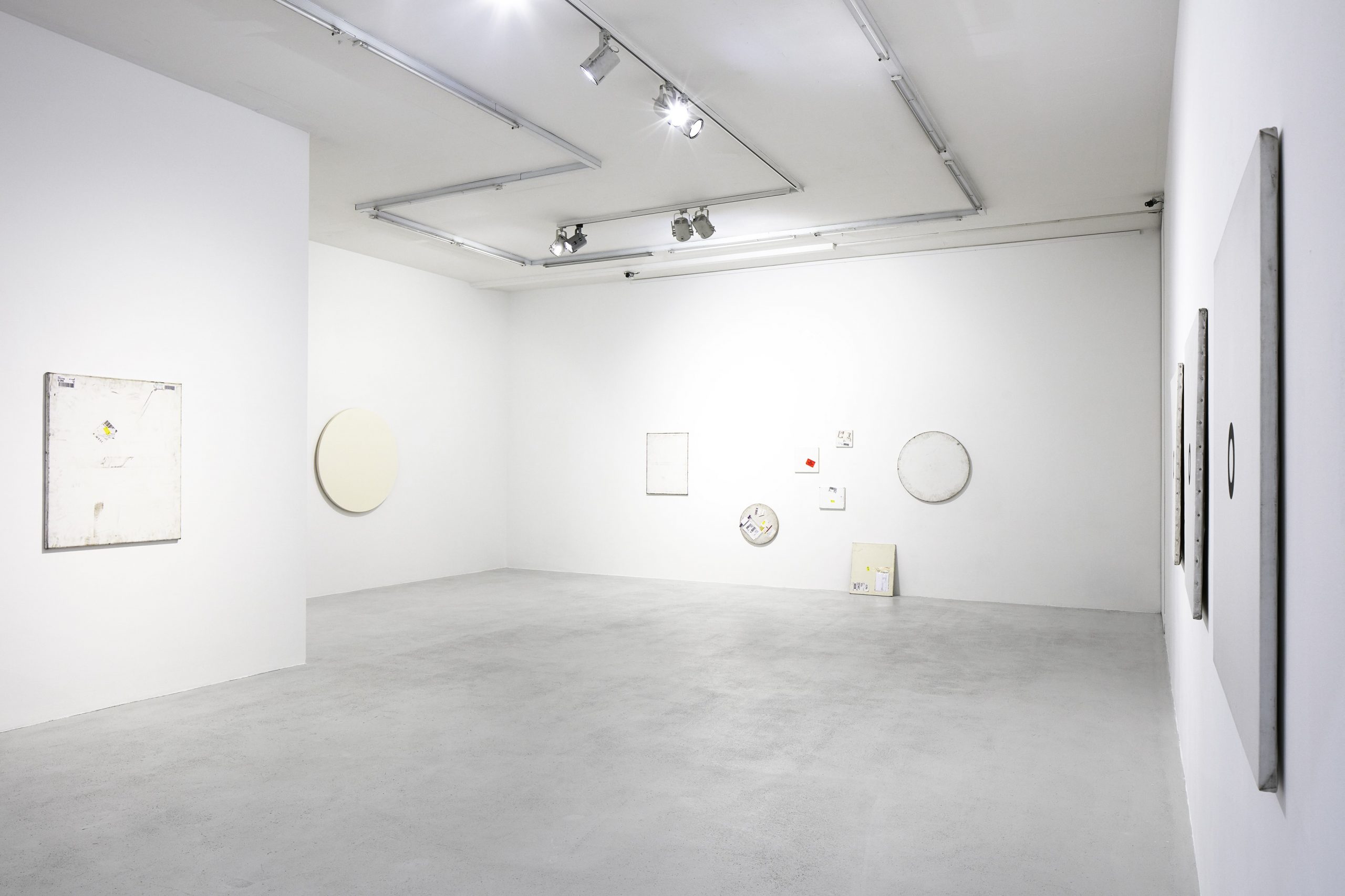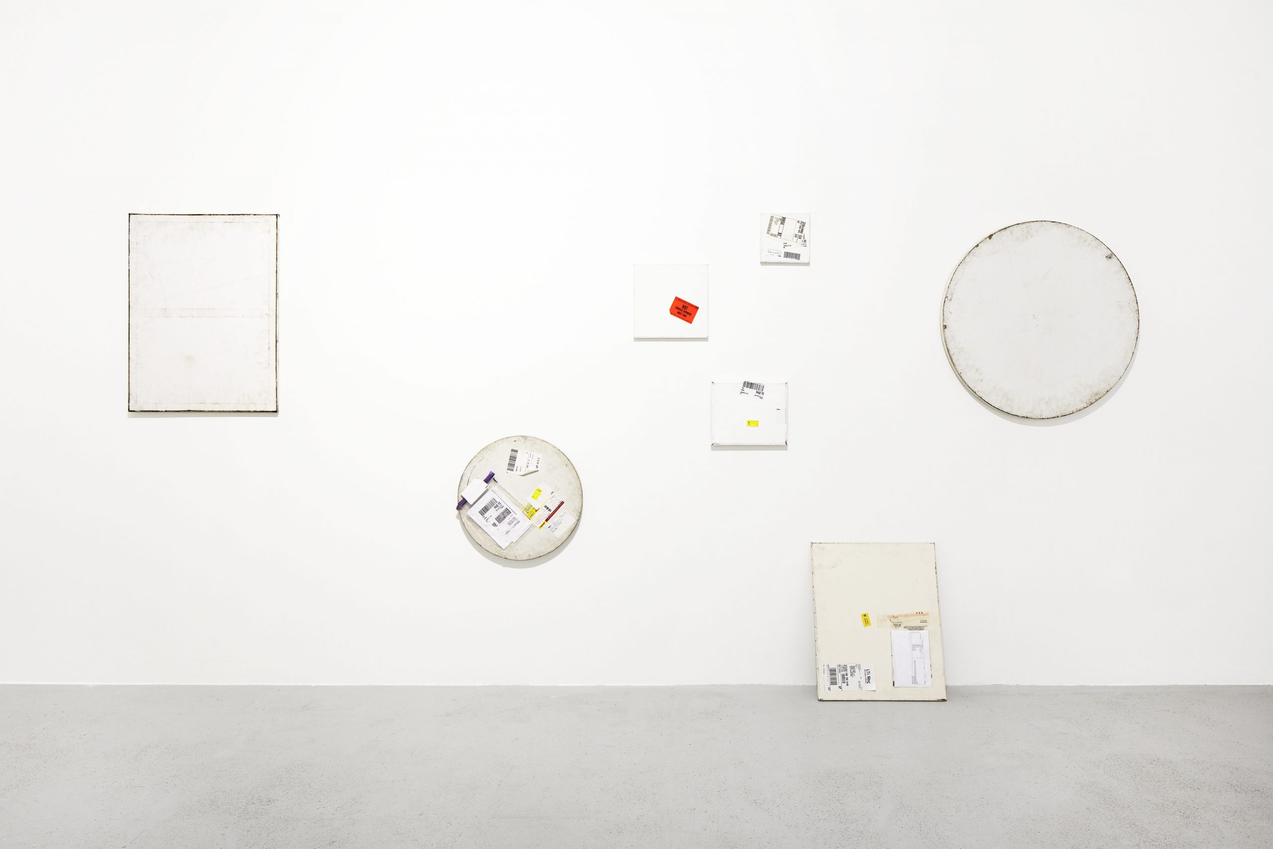 Between 1966 and 1974, Olivier Mosset painted the same painting for about 200 times: a black circular ring in the middle of a white square. In its constant repetition, the simple motif was a device to reduce the meaning and individuality of every painting — ironically, over the years it has become something of a trademark of Mosset himself. Along with a group of monochromes from recent years, a number of works from different periods of this “meta- series” offer the opportunity for further consideration and contemplation of the concept of the author and the aura of the original. And of course, like Karin Sanders’s, they are simply excitingly good paintings.