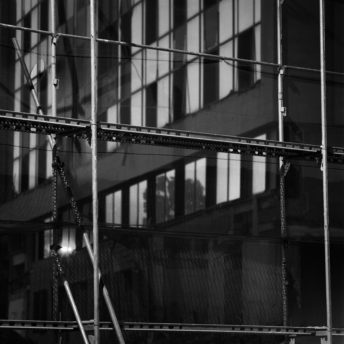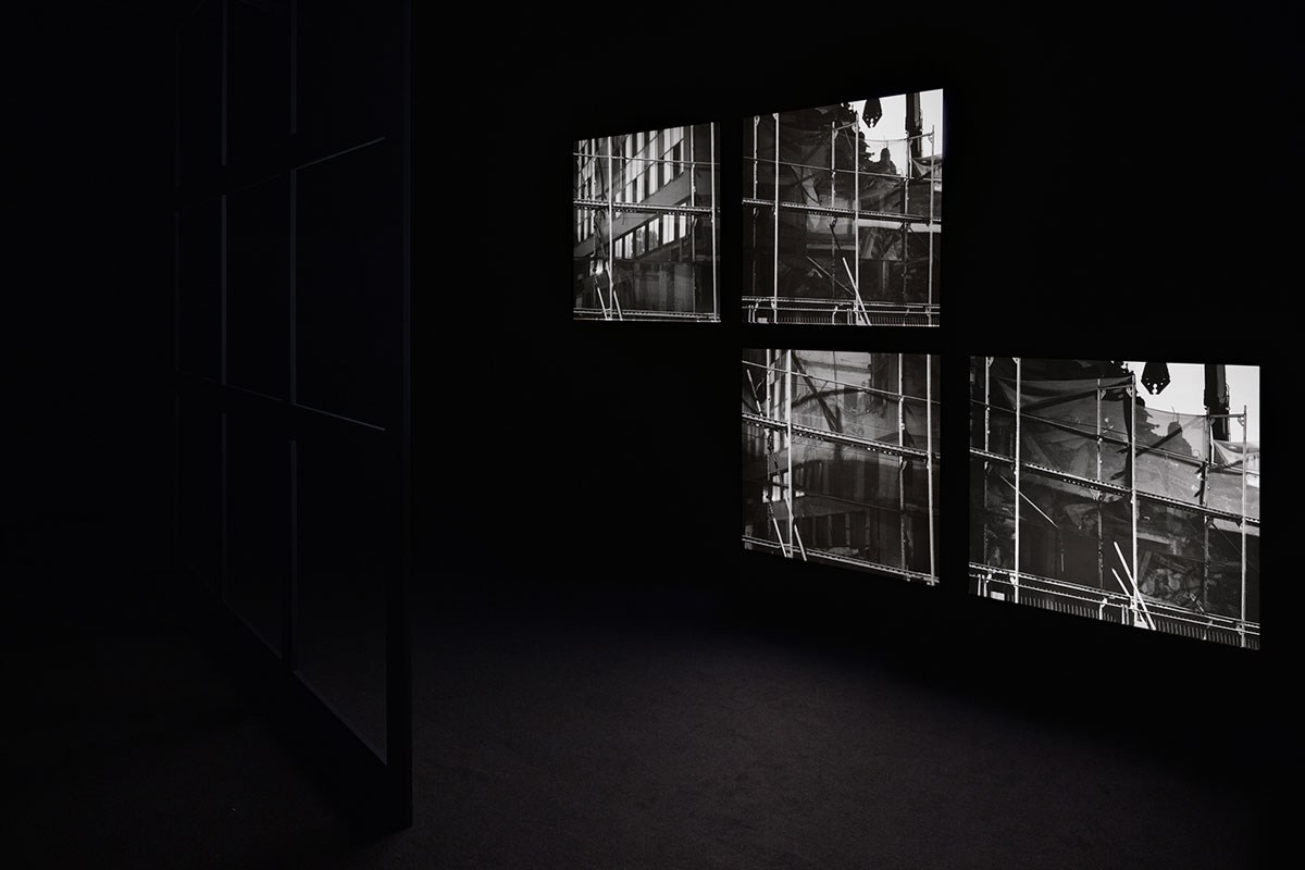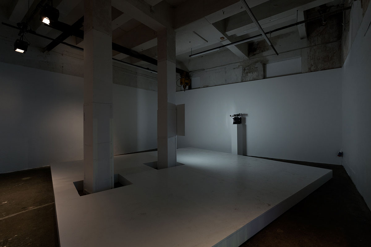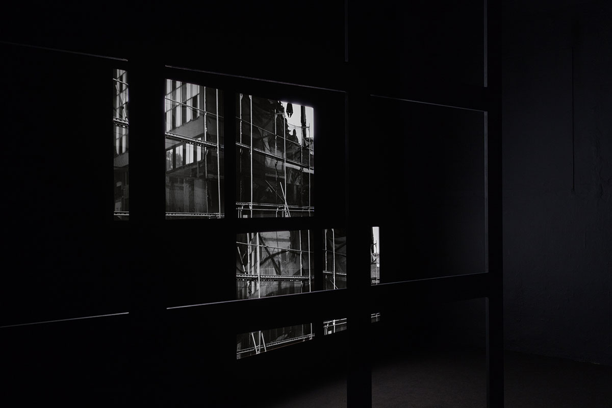 The exhibition is comprised of a 16 mm film loop that centres around an elusive object – a reconstruction of a 17th-century geometrical sundial – and a photo series depicting the building of the Ministry of Finance being demolished. The grid – one of the favorite motives of modernist architecture – is abstracted from the photo series and transferred to the exhibition space. This “formalisation” of the EKKM’s post-industrial space in turn reflects the attempt depicted in the film of domesticating and rationalising a natural phenomenon through geometry.