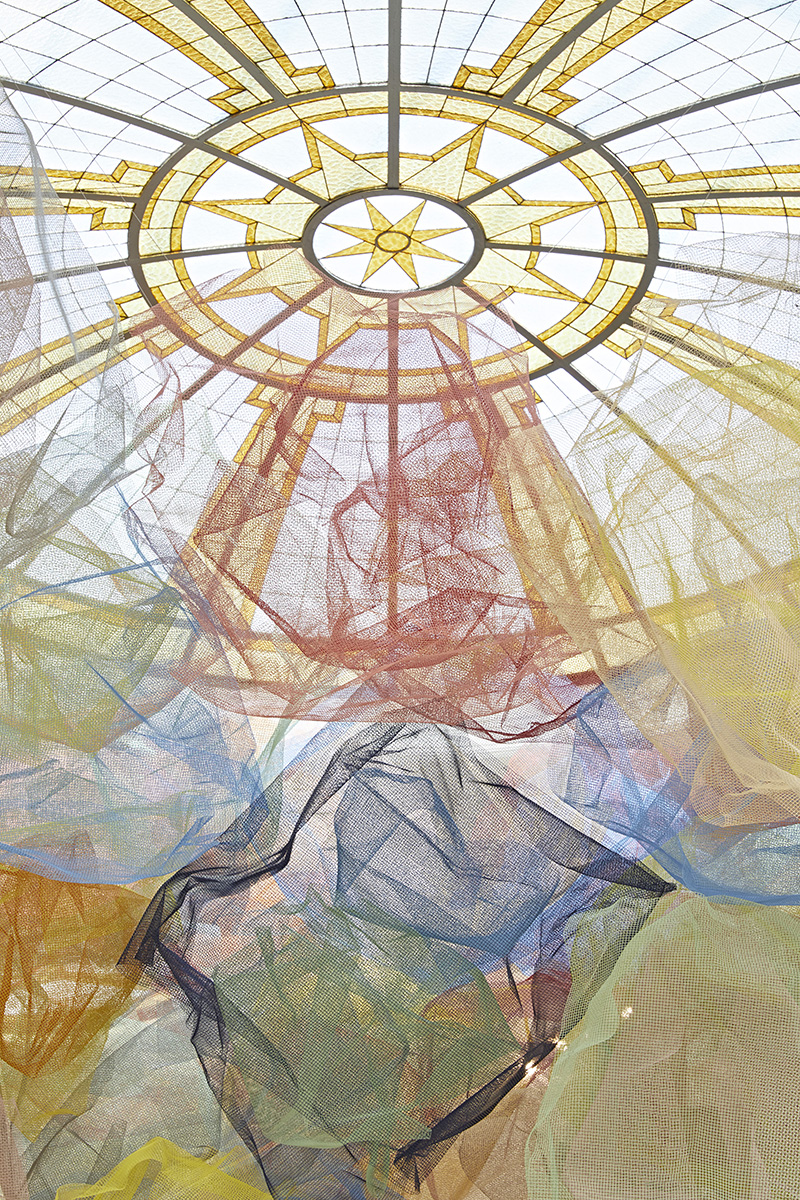 Works on display include a newly-created large-scale suspended mesh installation which reveals soft veils and layers of colour and Rana’s first video work, which captures the fugitive light in a woodland outside the artist’s city home as it cycles through the seasons during a year of lockdown.