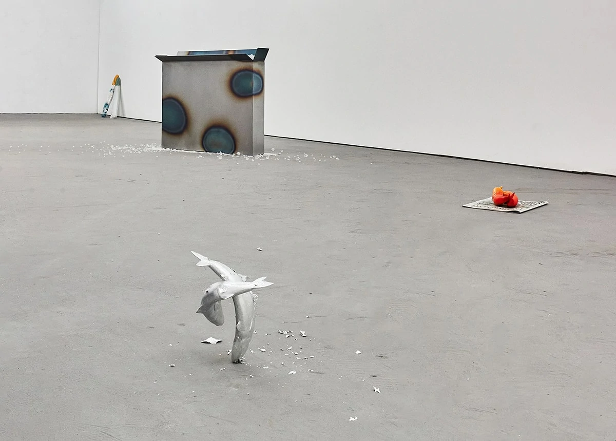 His sculptures question the idea of plausibility, they question their own existence, acting as a representational display of the space in which Hughes is trying to describe. The exhibition emphasizes Hughes’s interest in the language of material and object, he creates new narratives through an exploration of duality, his works belong in two places at one time, can be 2 things at the same time; both hot and cold, utilitarian and absurd.
