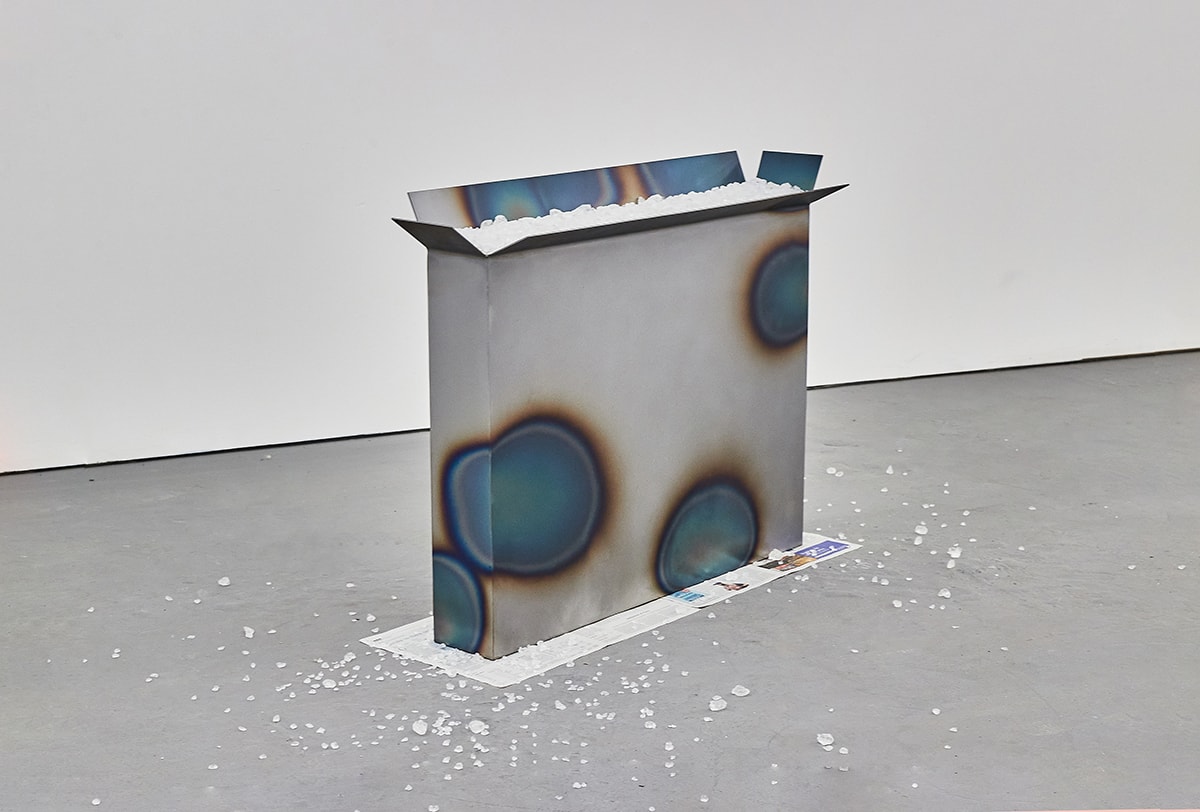 His sculptures question the idea of plausibility, they question their own existence, acting as a representational display of the space in which Hughes is trying to describe. The exhibition emphasizes Hughes’s interest in the language of material and object, he creates new narratives through an exploration of duality, his works belong in two places at one time, can be 2 things at the same time; both hot and cold, utilitarian and absurd.