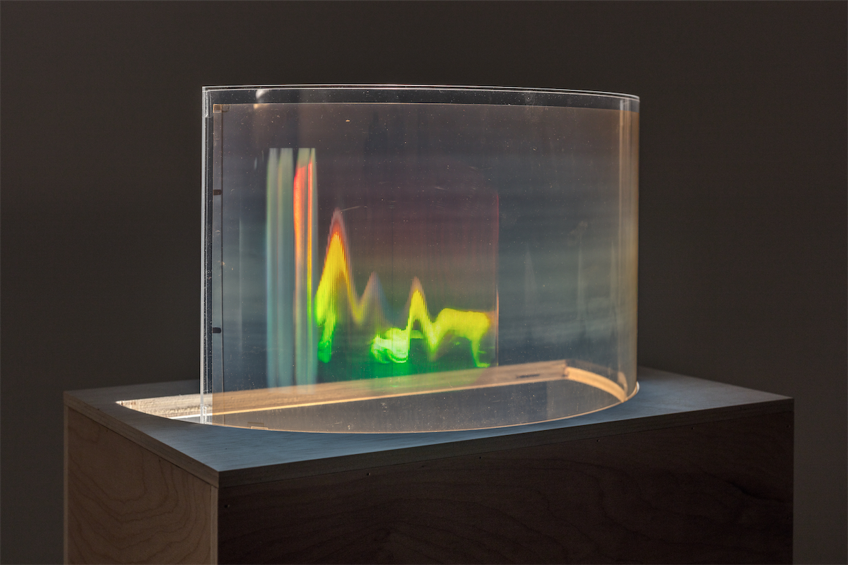 120-degree multiplex hologram, 56 3/4 x 20 x 13 in.