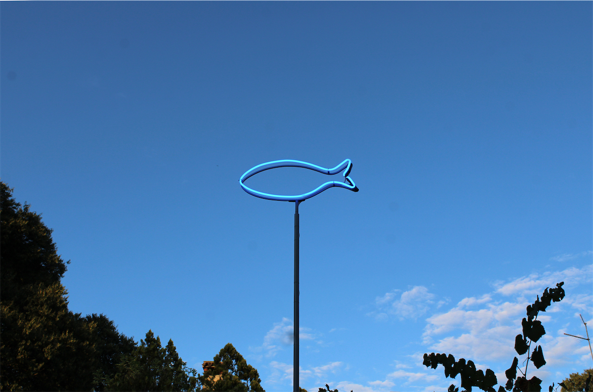 A message of resilience and hope is expressed by the work There is a light that never goes out (Arabic) by James Webb: a gigantic neon sign 7 meters long that cites the title of one of the songs by the Smiths, translated each time into a language that does not derive from the Latin, and that in this case is Arabic.
