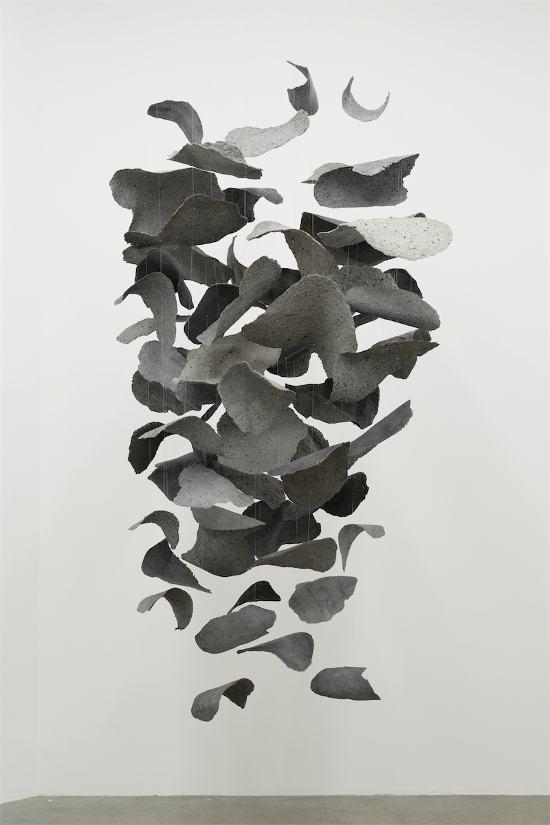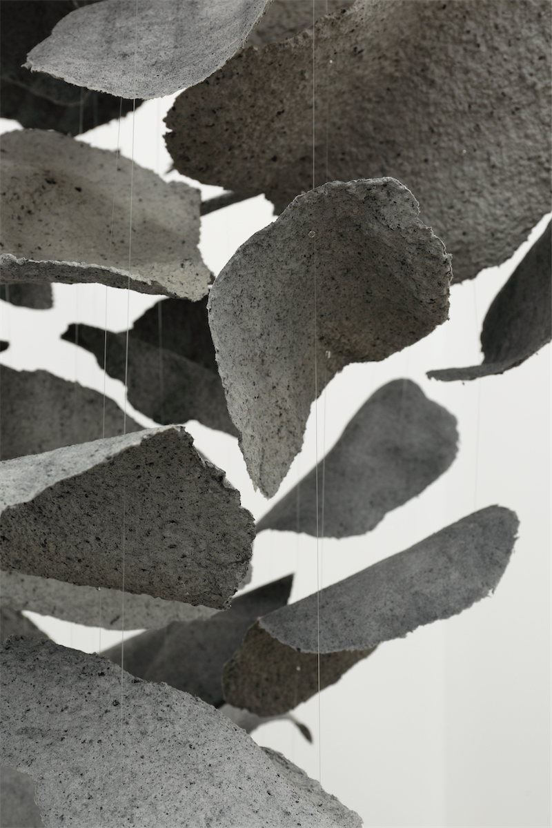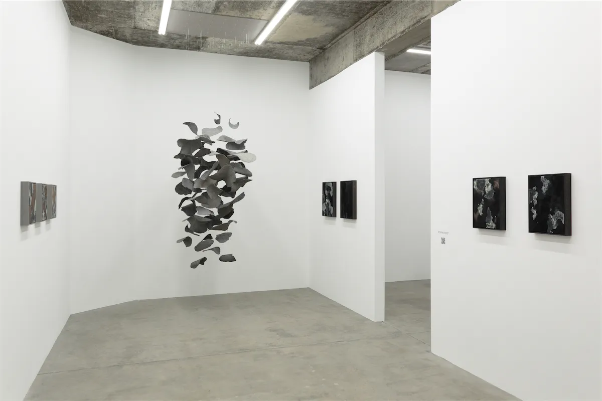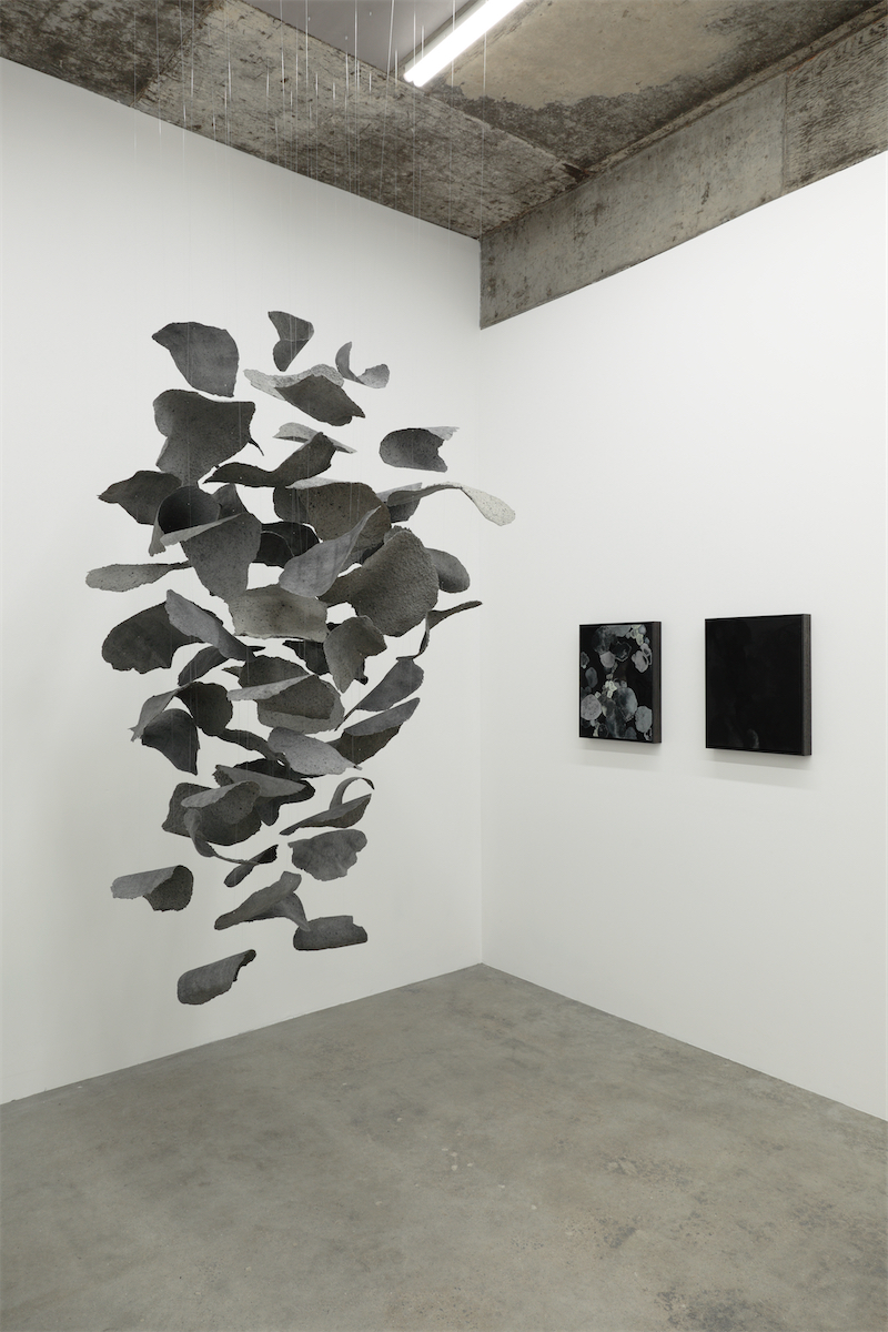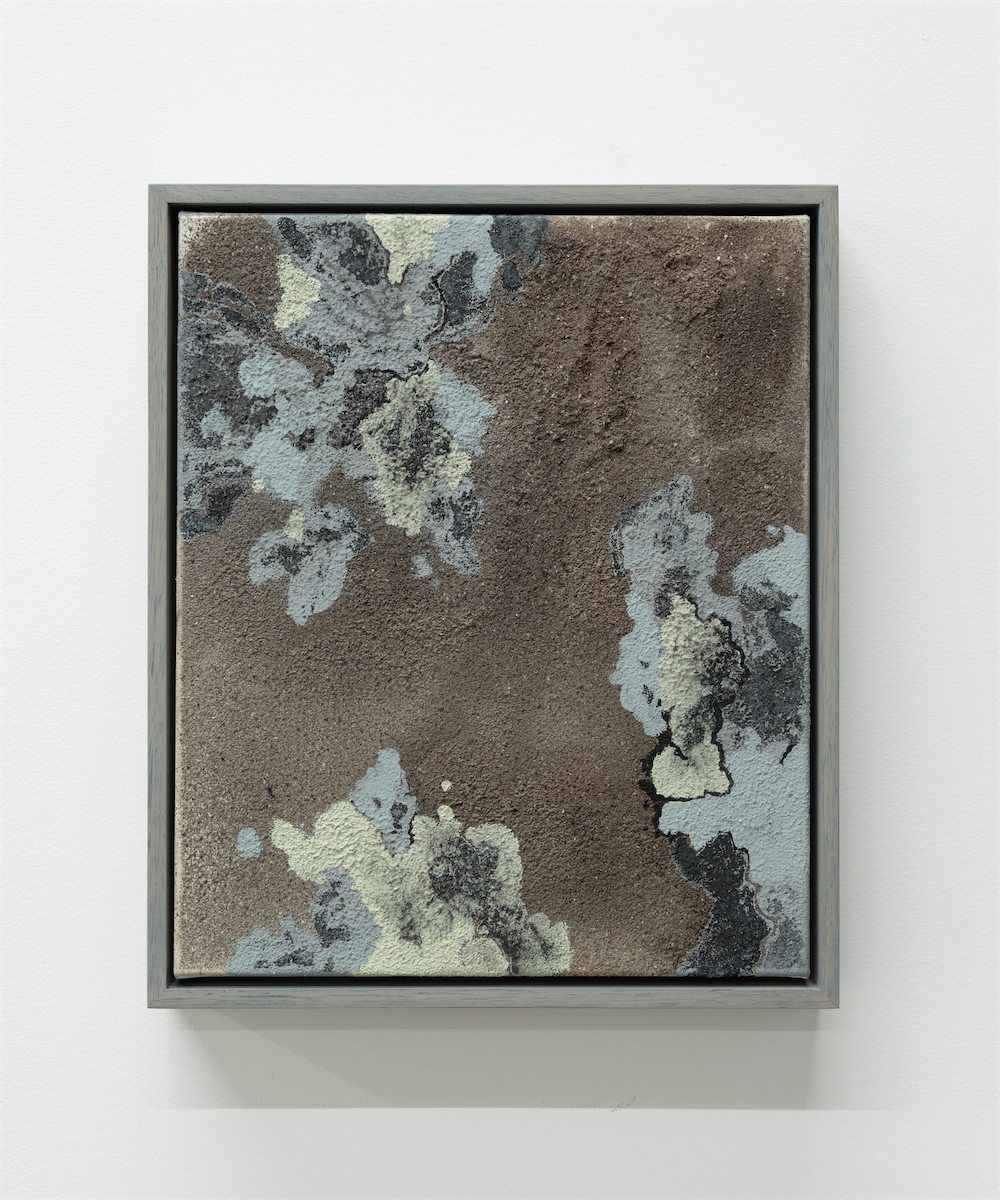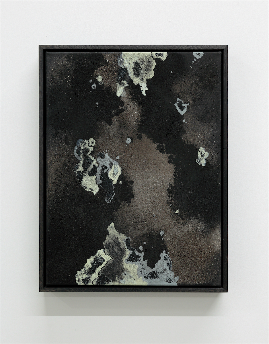 For Time Machine Bae and Lawler draw on the fascinating life of lichen, its unique symbiotic relationship with our environment, and its role as a bio-indicator. Their works emphasise repetition and transformation, combining charcoal, ash, synthetic polymers to create highly textured, patterned surfaces. Bae and Lawler draw on references from the microcosmic patterns of the natural world, to create works that take on a macrocosmic state.