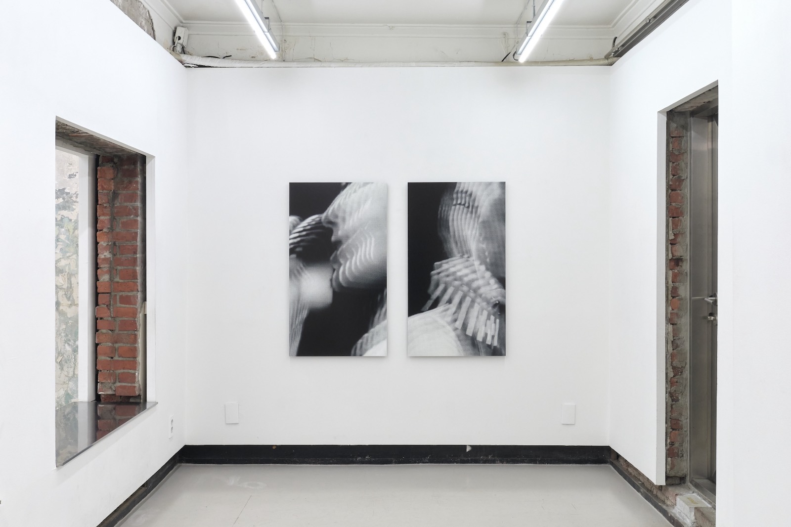 The exhibition title, “dew point”, refers to the threshold temperature at which water vapour in the air condenses into droplets. Borrowing this concept, the artist defines the world he has physically experienced as the ‘inside’, and the world of others encountered through digital media as the ‘outside’, visually exploring the ‘temperature difference’ between the two.