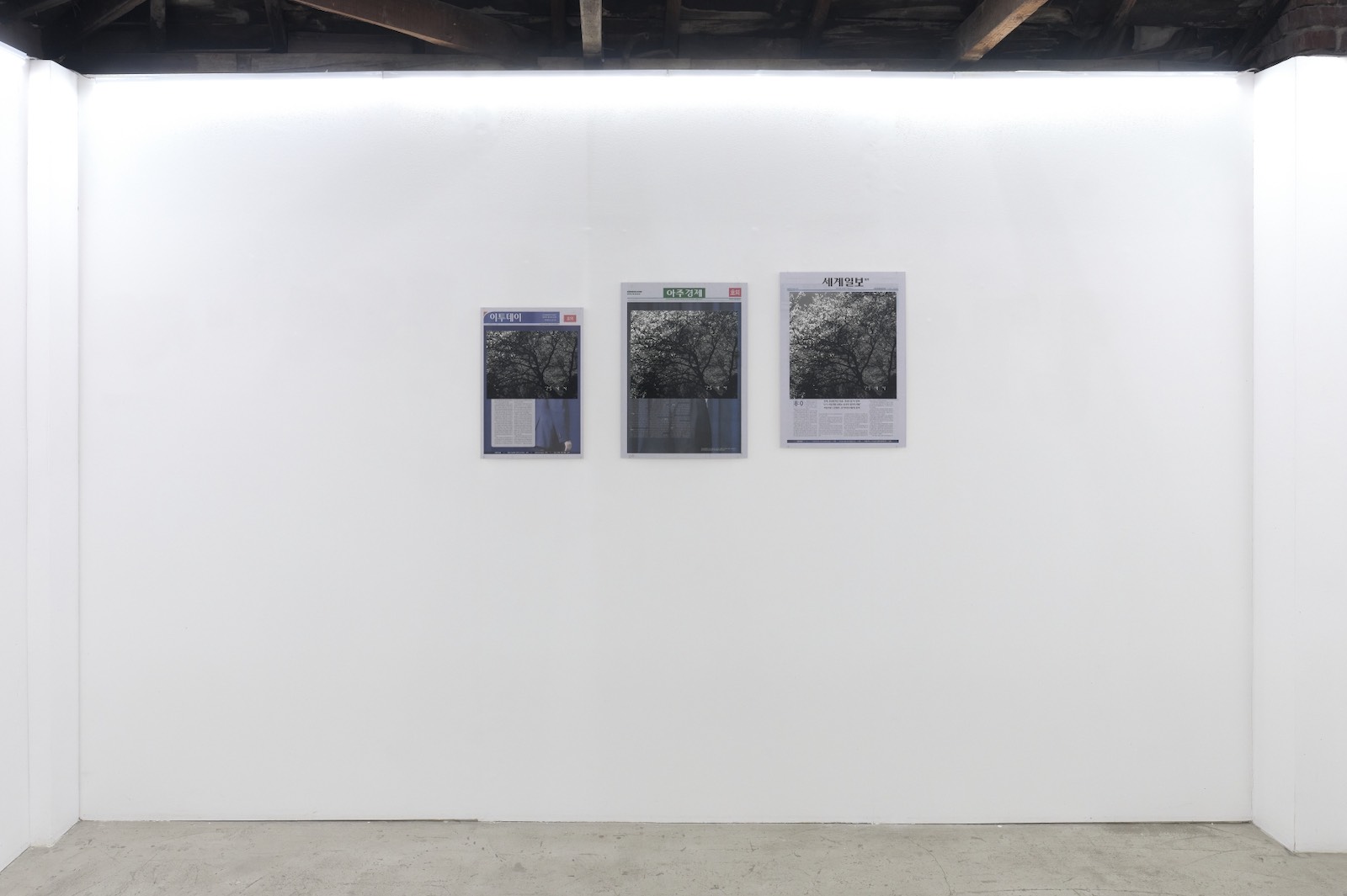 Young Ho Jeong focuses on the origins of photographs he has taken himself and images floating in the virtual world amid this current. Photographs begin in physical reality, that is, the ‘inside’, while images collected from social media are data based on the ‘outside’. Rather than trying to distinguish between these two media, he focuses on the shifts in perception that occur during the process of experiencing each. The flickering light in front of closed eyes, the outside beyond the glass window, the online data transmitted through a monitor all connect through the human brain, the inside of a window, and the boundary of reality. The newspapers appearing in this exhibition, along with the cathode-ray TVs, represent traditional media that once stood for the external world prior to digital. His photographs juxtaposed against these newspapers become a device that dramatically highlights the temperature difference between reality and the digital world, like dew forming on a pane of glass. Dew Point questions anew the shape and boundary of what we call experience through these ‘condensed images’ that arise at this very point.
