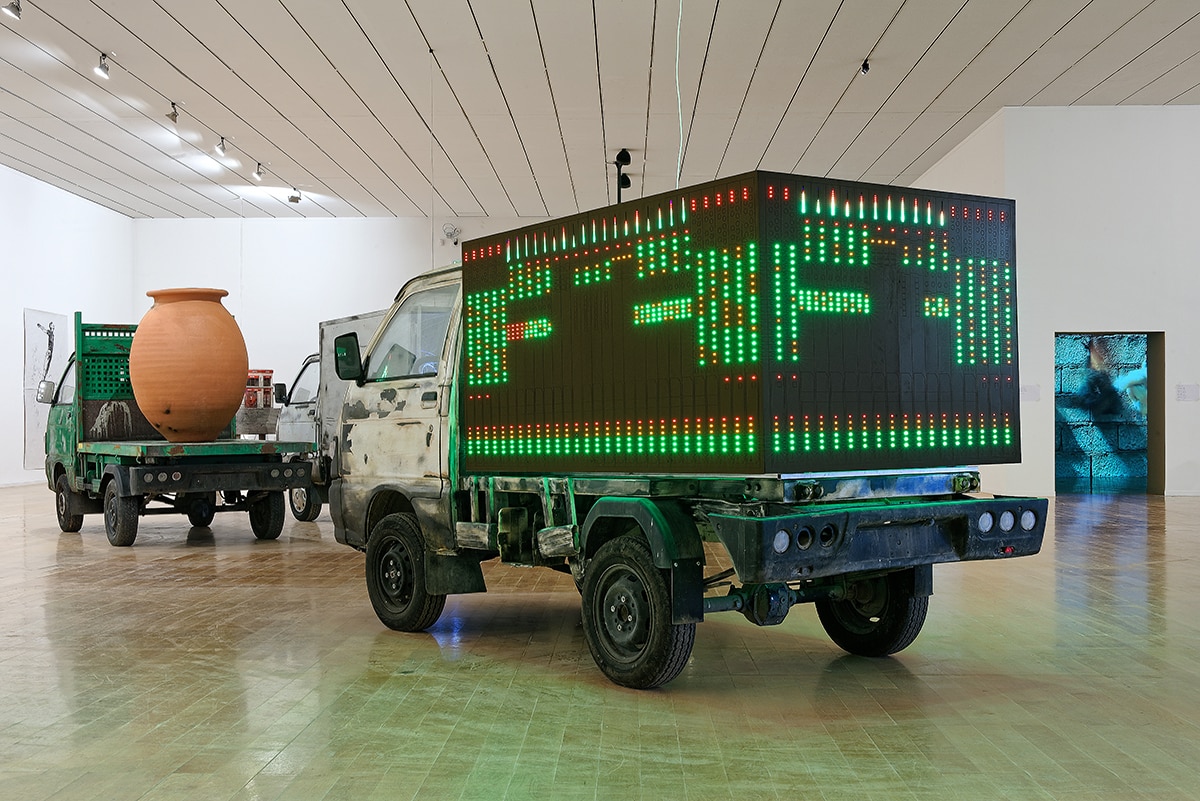 Speaking of his childhood, the artist fondly recalls the silent, rough landscapes of the Aurès mountains: ‘dry, full of scars: the land of the Berber Numidians.’ The third of five children, Abdessemed grew up and began his studies in Batna, Algeria. At sixteen, he was the youngest in his intake at the École régionale des beaux-arts de Batna. The artist remembers his school as a haven, a space to create and to run free; something which ended abruptly with the arrival of Arabisation in Algeria. He saw the mandated imposition of the Arabic language and customs upon his community, and the ensuing suffocation of the Berber identity and vernacular. Expression, he notes, was a rare good.