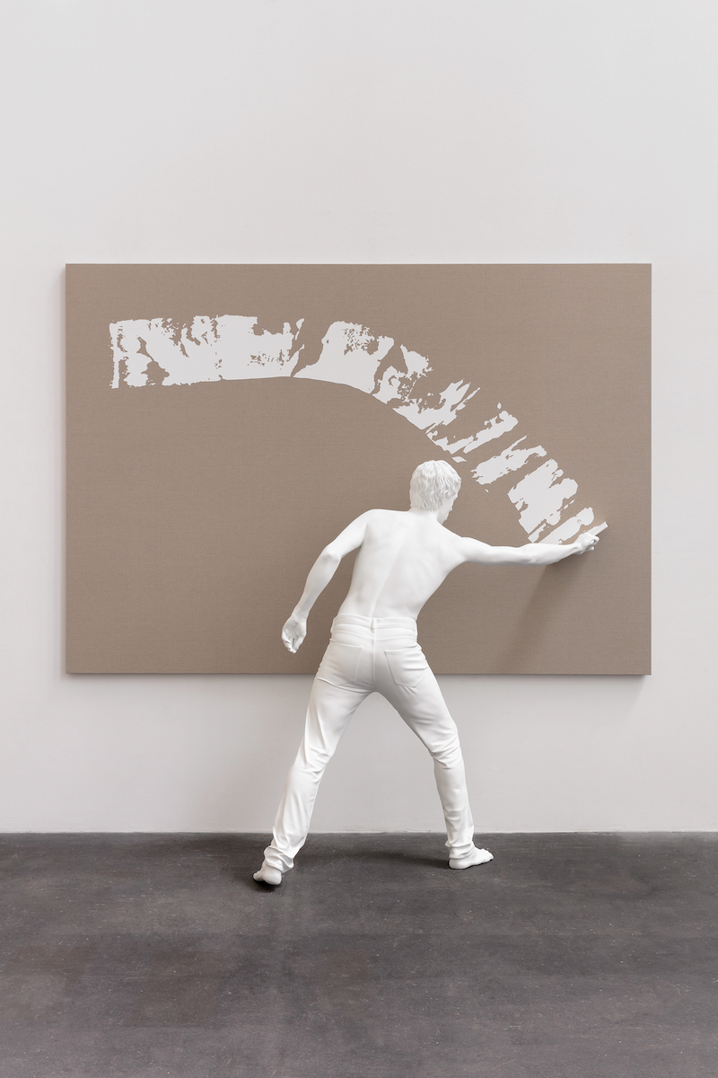 Figures casted in bronze and lacquered, ball in marble, 117.5 x 2,000 x 905 cm, photography by Roman Maerz © Elmgreen & Dragset, courtesy König Galerie