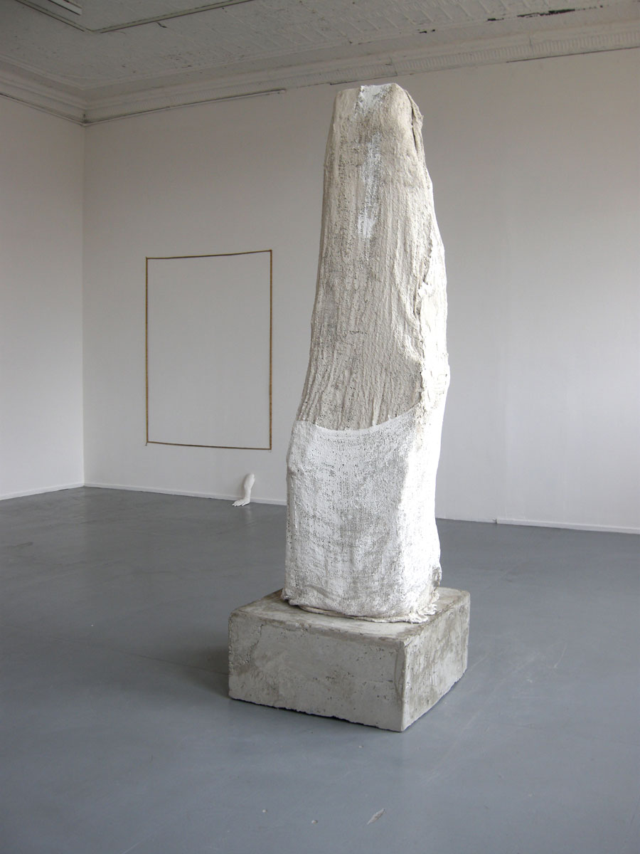 Using malleable materials that can be worked by hand – cement, clay, plaster, Styrofoam and resin – Kläs is a process-based sculptor who maintains an intimate physical relationship with her work. Interested in the dynamics of group sculptures, Kläs often creates human-scale ensembles that seem governed by their own internal and external logic. Her practice frequently addresses stasis and movement, with her sculptures eliciting specific gestures and motions from viewers. Kläs is attentive to her inner experience as well as external reality, and her sculptures and works on paper appear at once as mysterious presences and projections of a poetic imagination. Differing relations of scale, asymmetry, and the contrast between light and dark colours, also play a central role in her work.