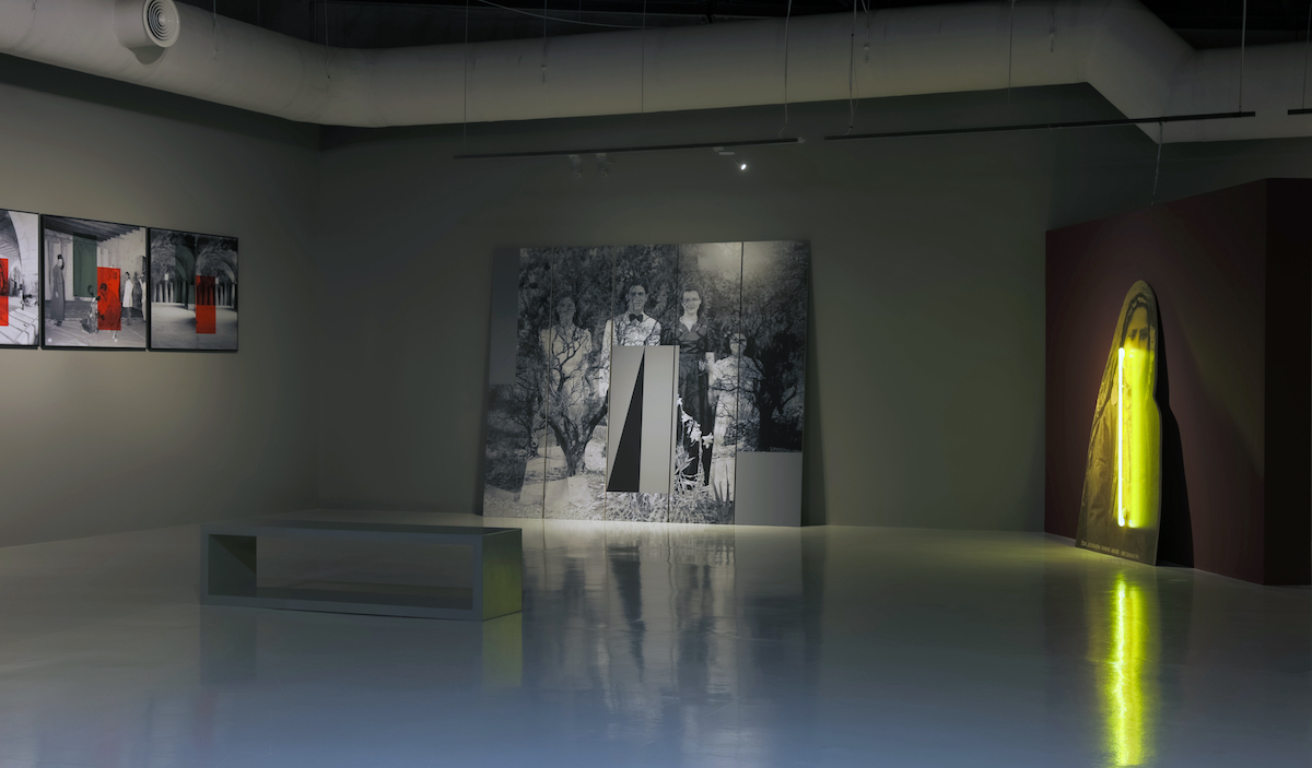 Much like the artists of the early twentieth century who, through the deployment of collage, healed from the trauma of the first world war by binding together everyday and artistic experiences; Harb succeeds in materialising complex and unfamiliar terrain. Operating as a researcher, by collecting and synthesising archives of rarified ephemera including photographs, negatives and maps, Harb mediates his materials in a manner which dismantles them from a static space. Through a process of collage, layered down with geometric precision, he stitches visual artefacts together and forms fresh constructions that invite unheard discourses and a historical rethinking.