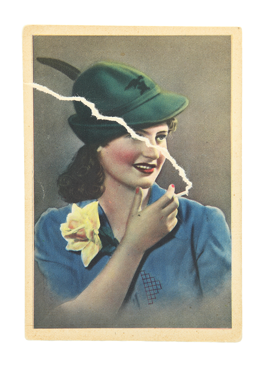 Altered postcard, paper, 7.8 x 15 (min), 10.5 x 15 cm (max)