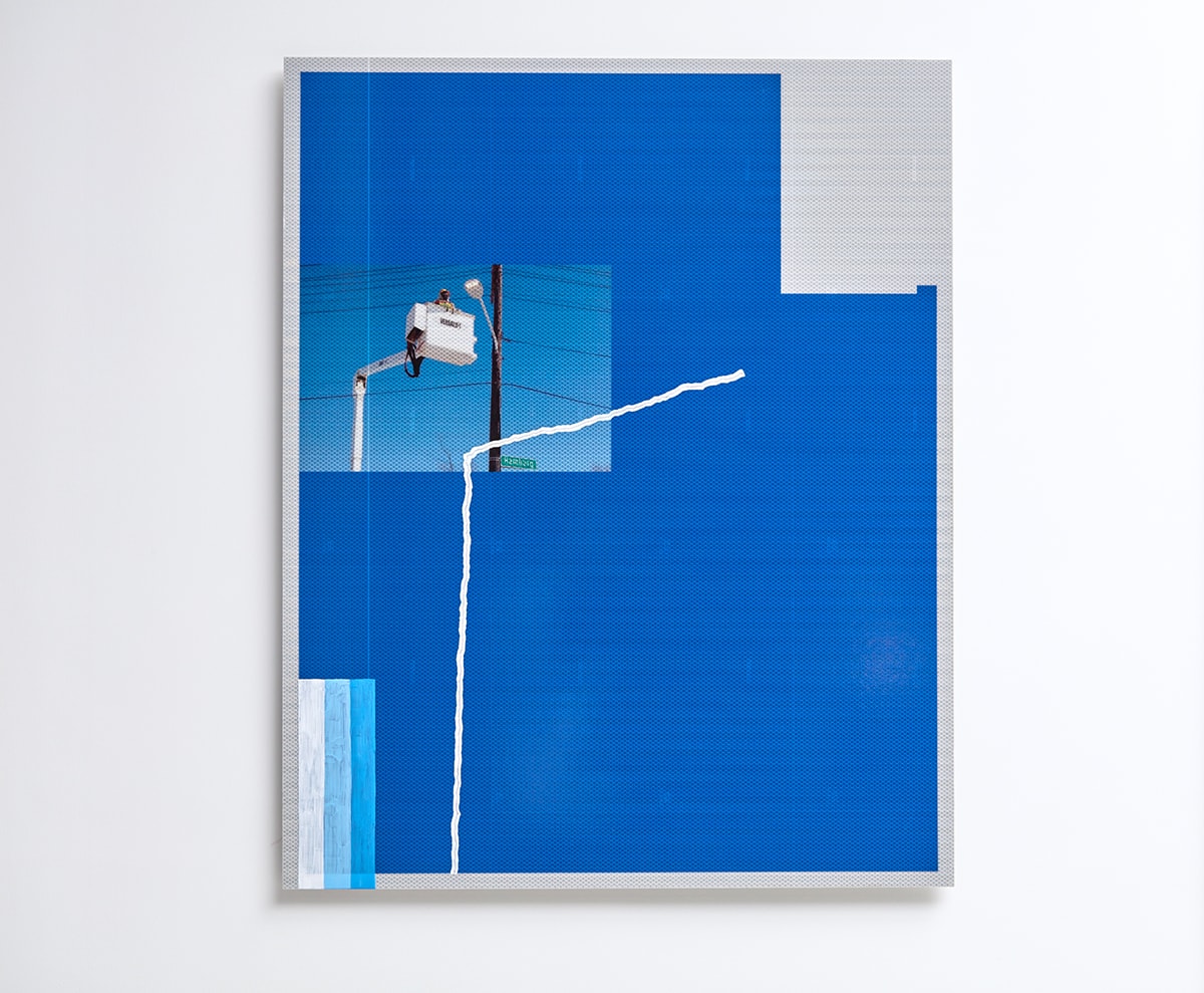 Oil on offset prints, offset prints, tarpaulin, fabric adhesive tape