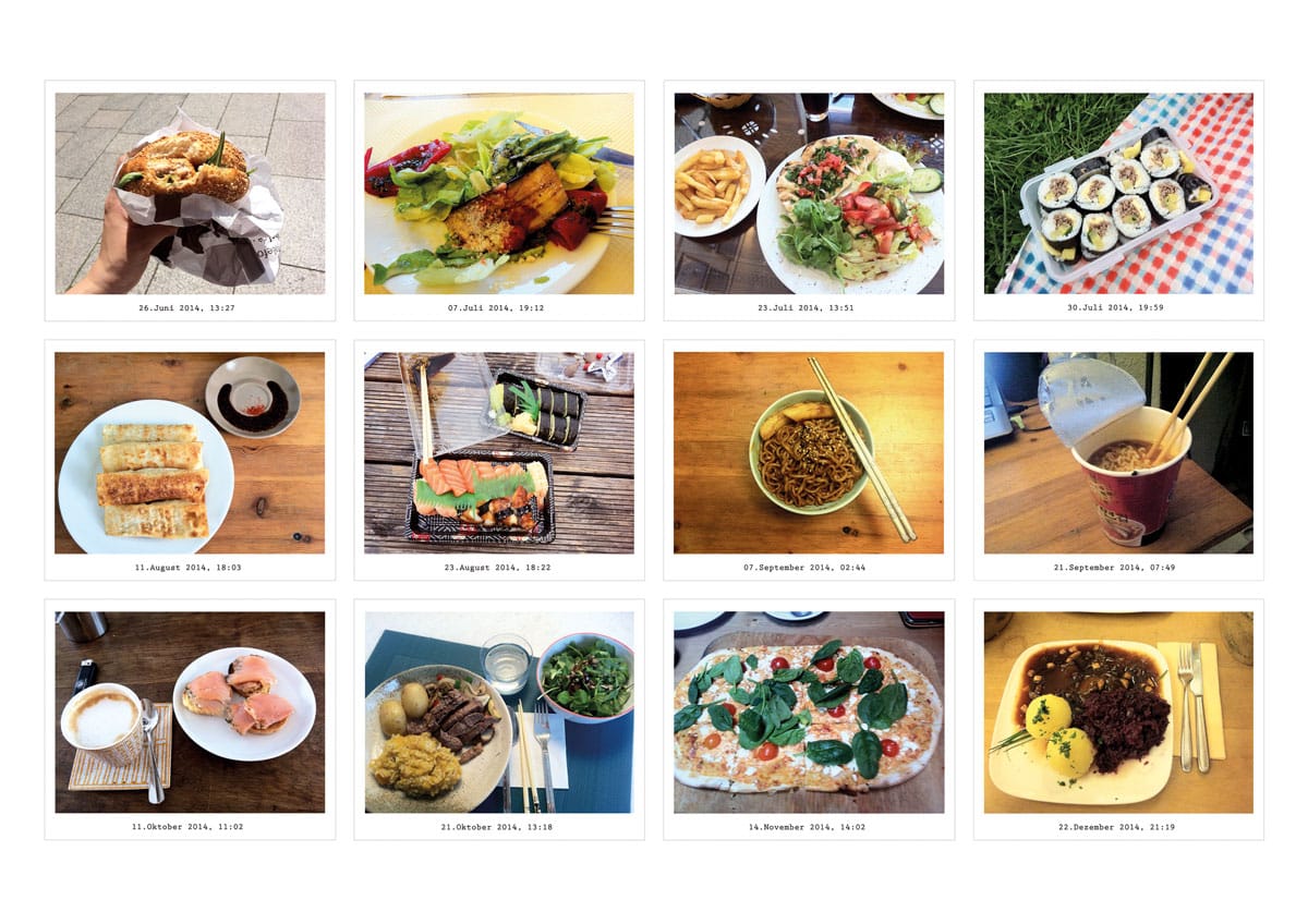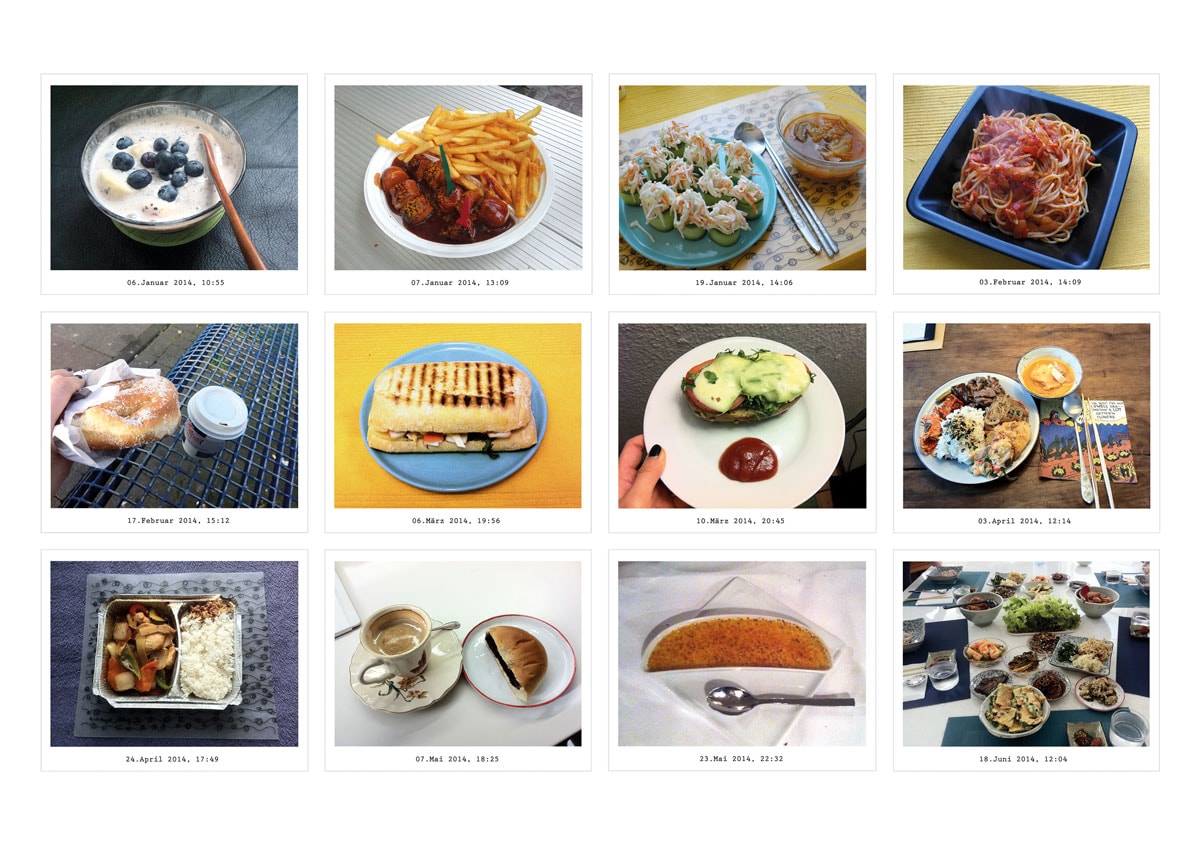 Kyung-Nyu Hyun: “The project ‘Nahrungsaufnahme’ compares the vastness of media consumption and production with the physical act of eating. By creating a database I establish a mutual relationship between the process of consuming and producing both food and photography.