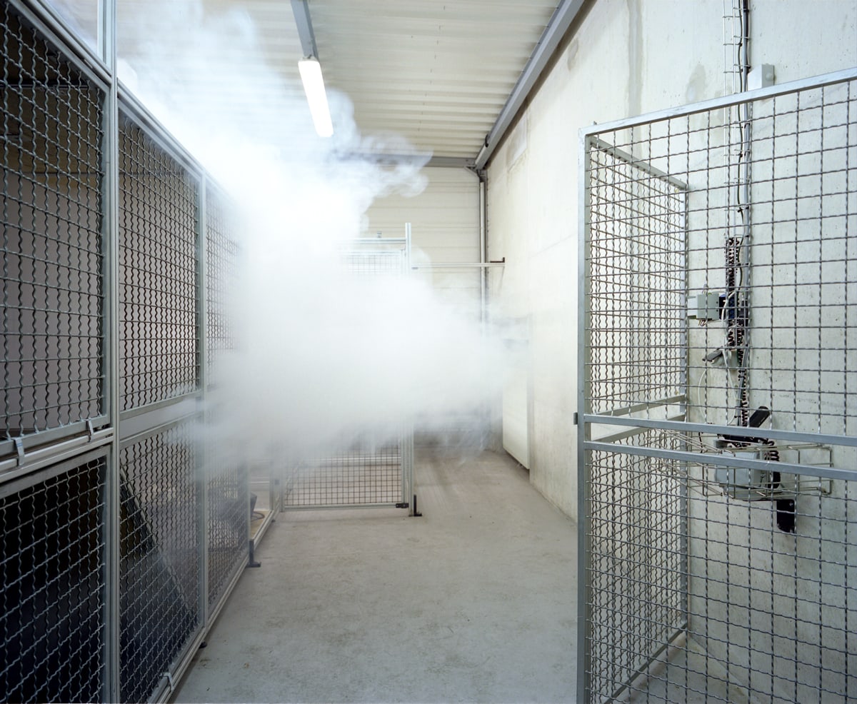 Contrary to familiar artistic practice the work’s creation is not in the artist’s hand but discovered and documented without any intervention. Each situation is based on an essential simulation. Although a clear, unaltered image is on display, it demands an explanation. Cleverly Gadonneix’s photographs play with the clash of document, simulation and fiction. Deserted places and interiors create a rather disturbing atmosphere in which the line between real objects and fictitious incidents becomes blurred.