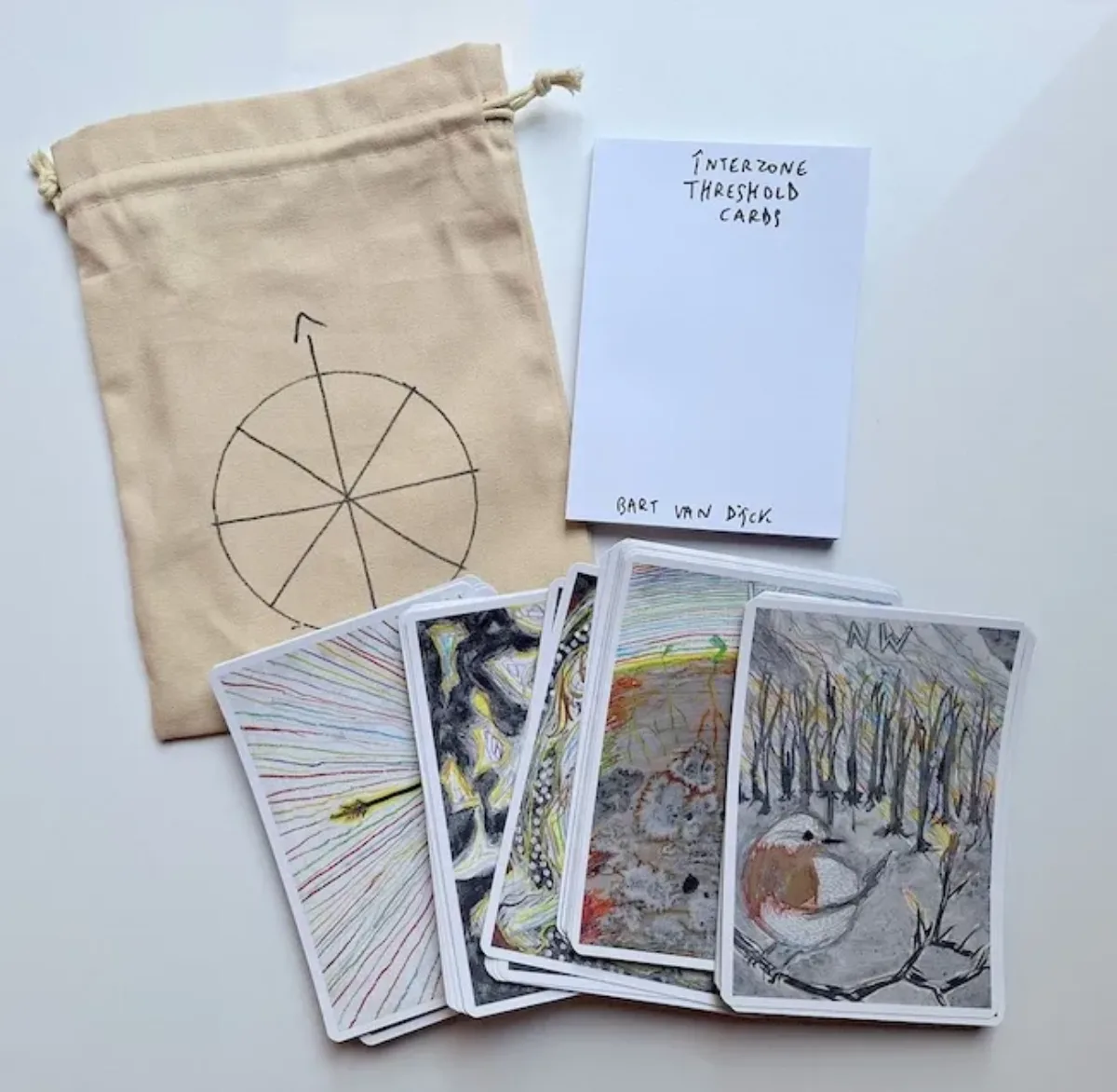 These cards were created during the artistic PhD project ÎNTERZONE (architecture of the ritual space) and deal with change, growth, decay and the cycle of the seasons. They are linked, in a direct or indirect way, to the different rituals Bart Van Dijck developed and performed during the past years.
