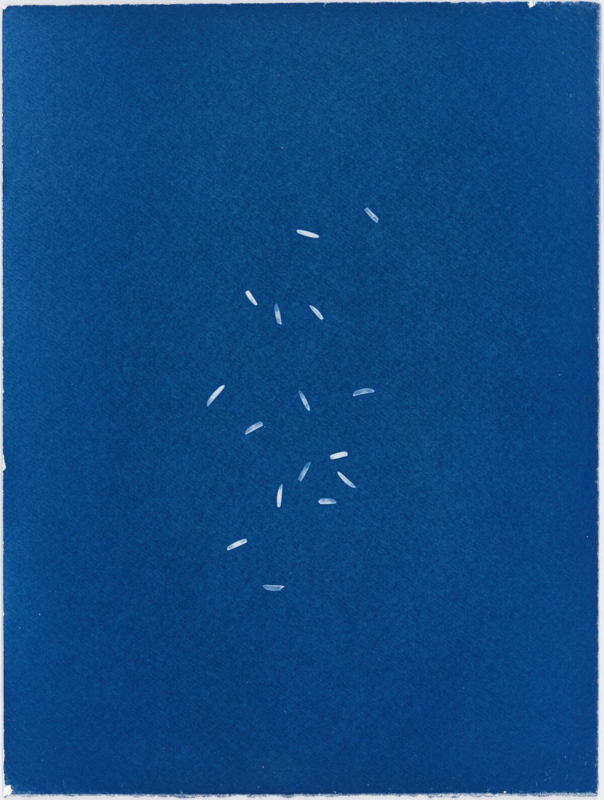 There are large scale cyanotypes, which inscribe the photographic processes Anna Atkins developed. There are prints on fabric in the shape of herbs and flowers, which recall the collecting methods employed by Atkin’s cousin, Anne Dixon, who was a botanist and prolific maker of herbaria. There are petri dishes filled with agar algae, which for the occasion becomes the medium where seeds of rice and forget-me-not can sprout. Agar connects to the materials and techniques that microbiologist Fanny Hesse moved from the kitchen to the lab. She discovered agar’s potential as a growth medium for culturing microorganisms.
