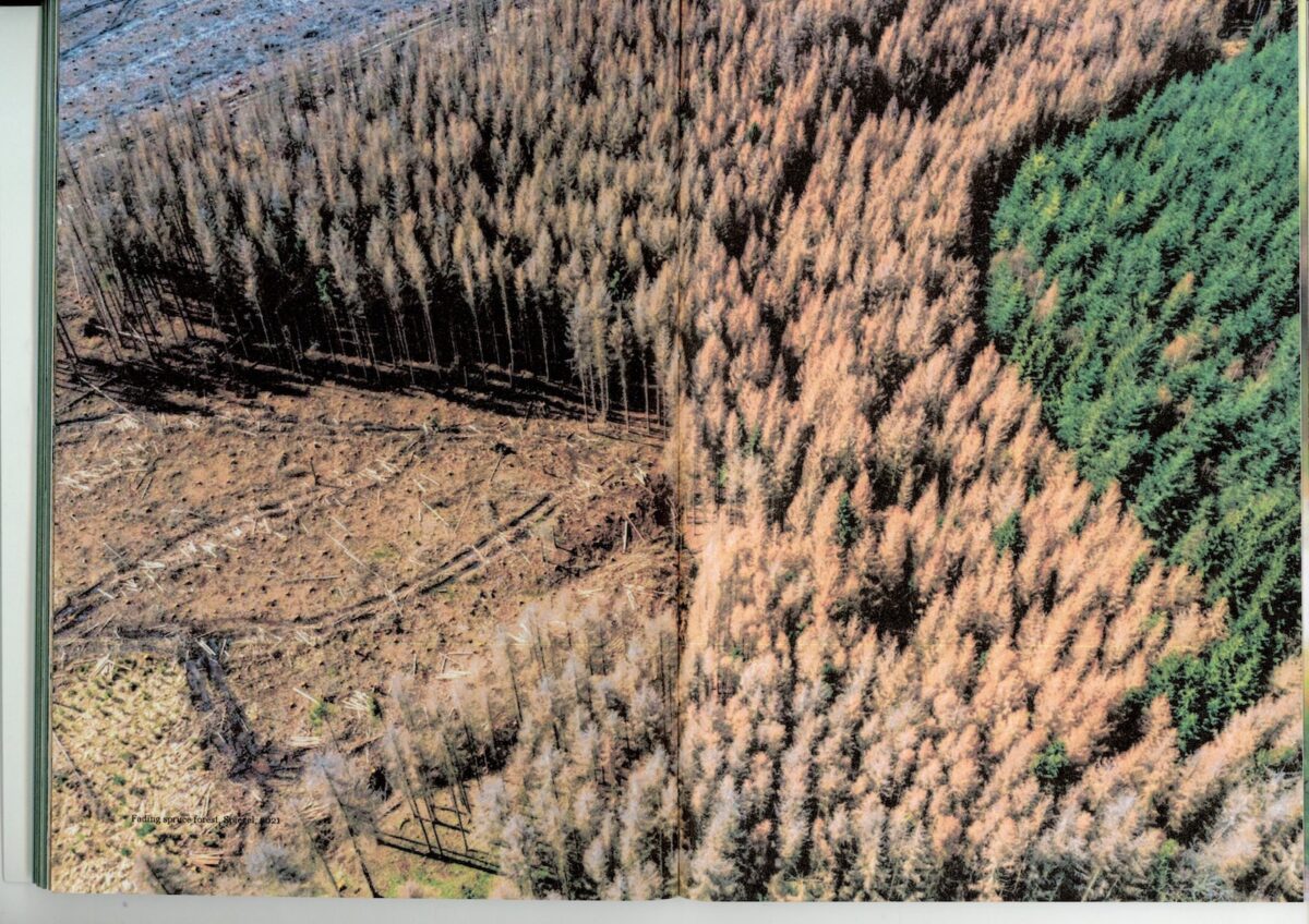 My grandparents live in a small town in North Rhine-Westphalia that usually is encircled by hilly and dense nature. Unfortunately, this changed drastically in the past decades and even more during the time I am concerned around the forest. The once vibrant green landscape turned light brown and falls into kilometer-long spruce log piles. Visiting my grandparents twice a year, I could observe and capture the forest catastrophe from a young age on. In response to my question why, I was told it’s because of the bark beetle. I always had strong doubts about that accuse. Why would nature allow such disaster?