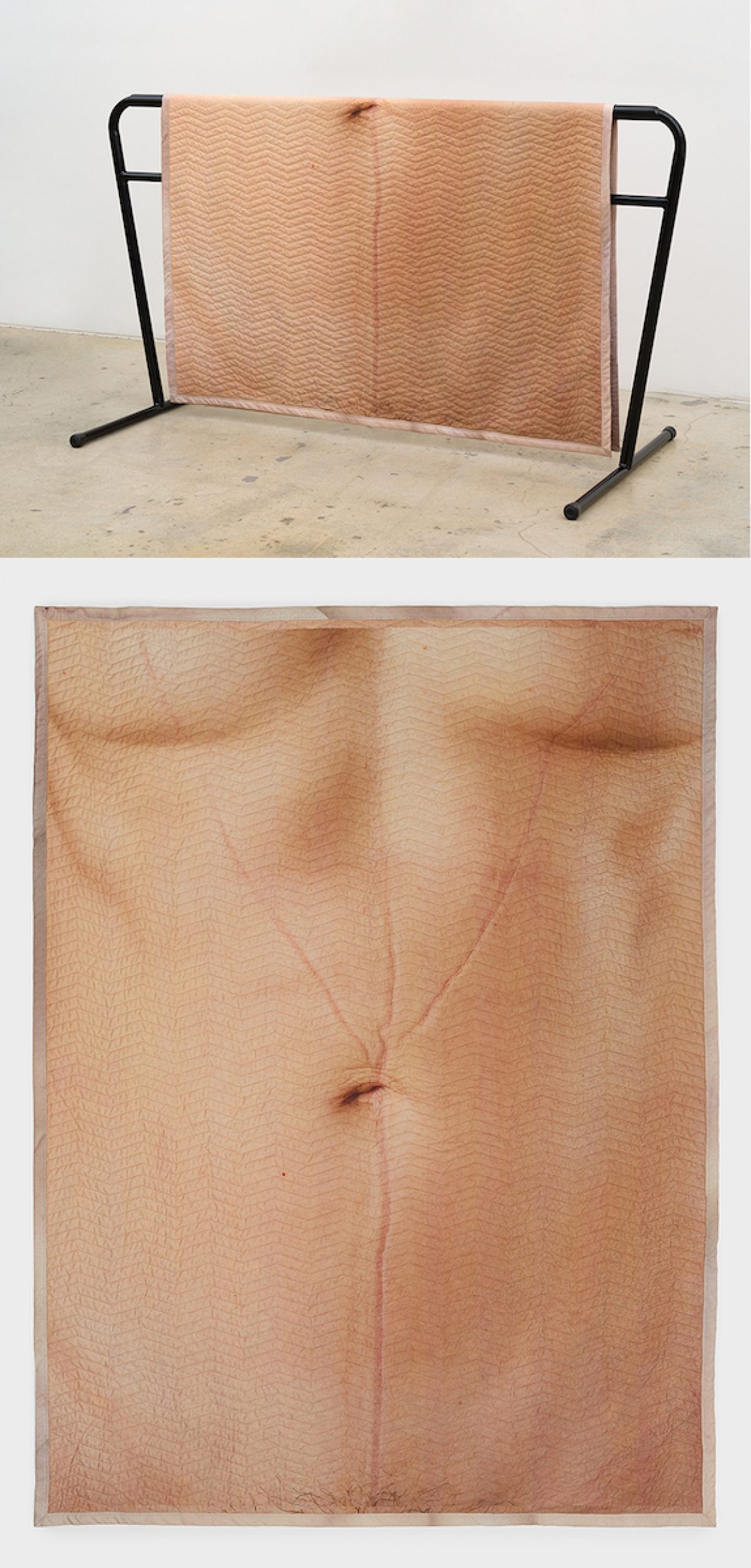 Printed fabric, cotton batting, nylon thread, Enameled aluminum Quilt: 80 x 60 inches, Barre: 72 x 42.5 inches