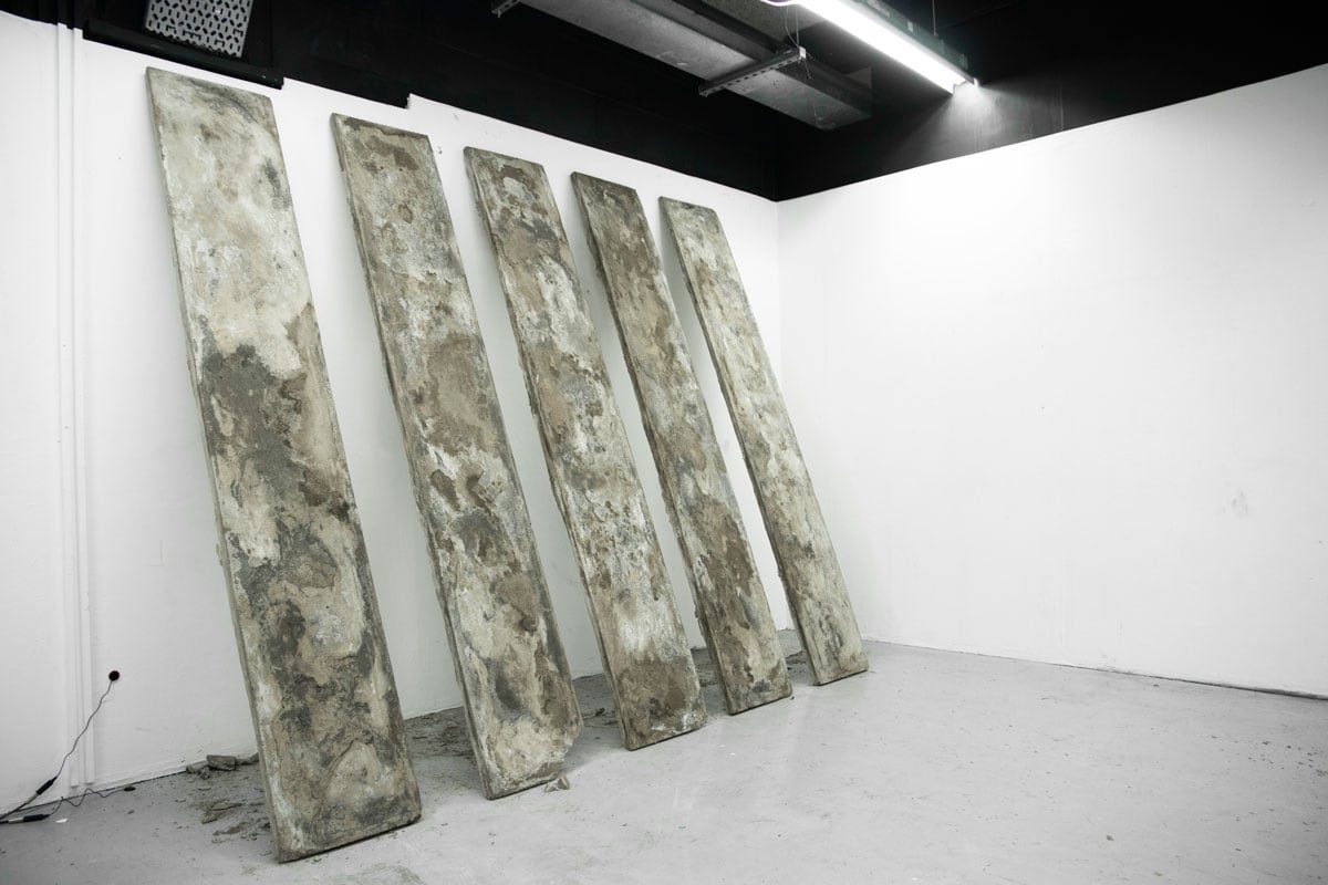 I acknowledge an alignment with construction work, often de-contextualising industrial matter, exploring our relationship with materiality, referencing architectural themes, processes and materials.
