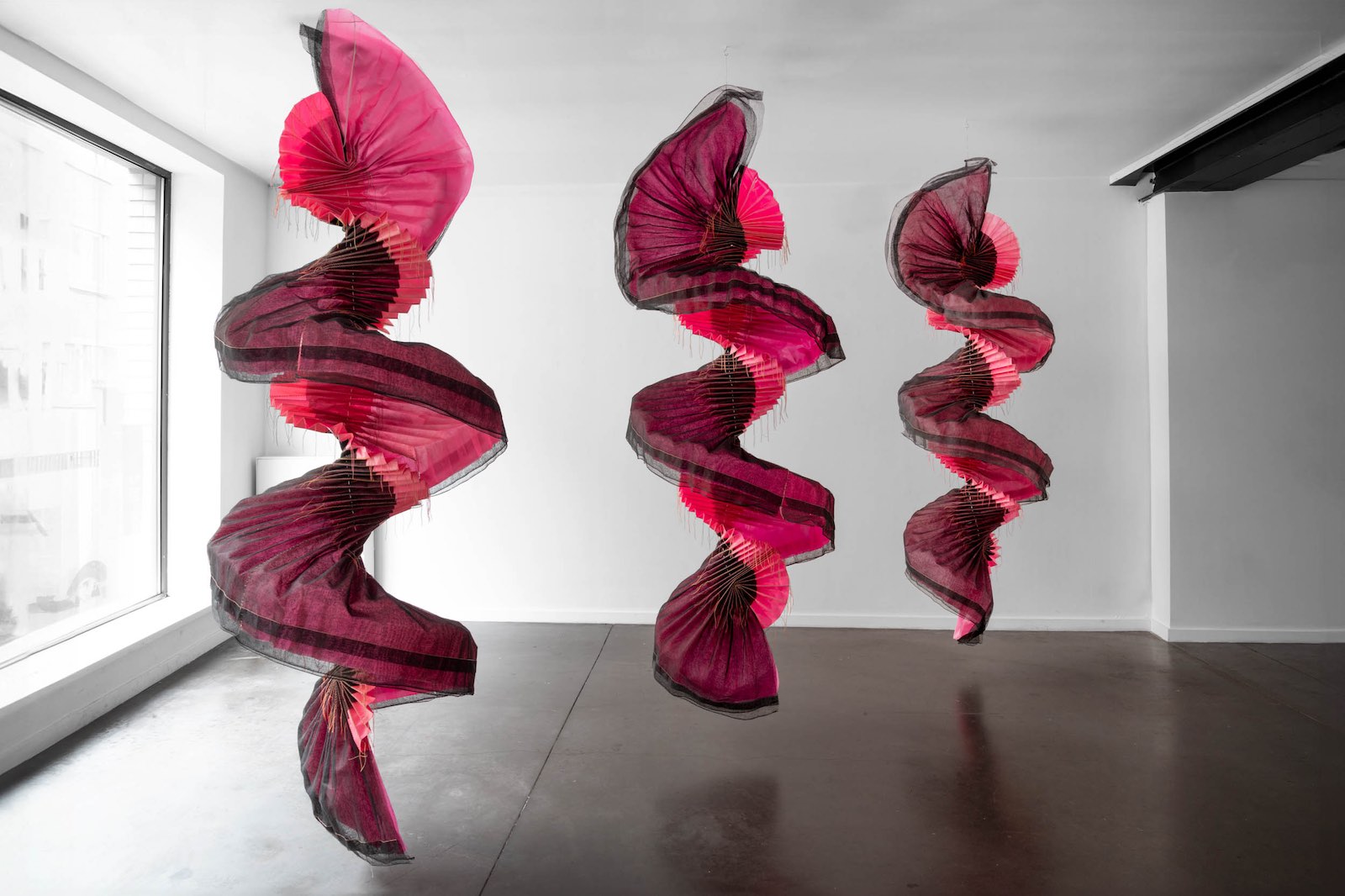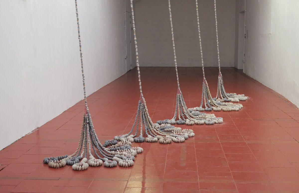 My works often involve handcrafted processes and gestures but take on a contemporary dimension in their conceptualization. Through this hybrid form, I strive to articulate a multi-identity heritage and create ritual spaces that oscillate between fiction and materiality. My installations often confront the viewer and occasionally invite them to take an active role. This participatory dimension plays a growing role in my current research.