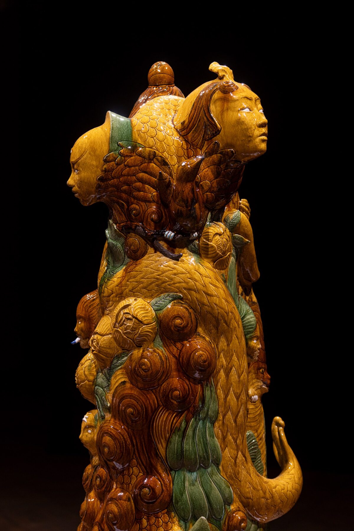 The idea of shapeshifting – the ability to code-switch, to blend in, to traverse realms – has become a guiding metaphor and a literal survival strategy, embedded in my work. Through sculpture, installation, video, drawing, and public intervention, I navigate states of migratory restlessness, using materials and traditions that range from sancai (tricolor) ceramics and institutionally loaned objects to motorized mechanisms.