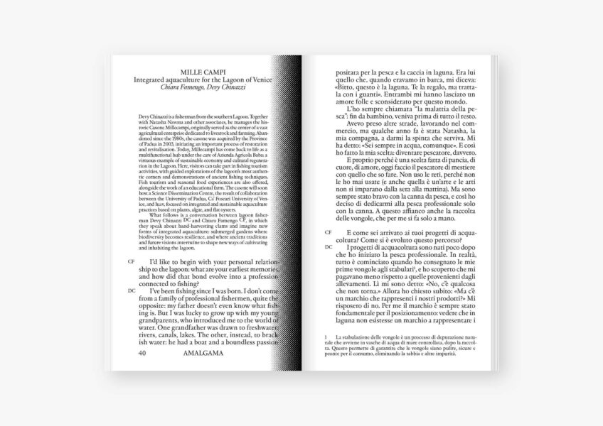 Water Works: Eco-Social Design is available hereAmalgama is the outcome of the fourth edition of Convivial Tables, a field-based research project commissioned by TBA21–Academy for Ocean Space, dedicated to exploring the relationships between food and ecology, and their impact on bodies of water.
