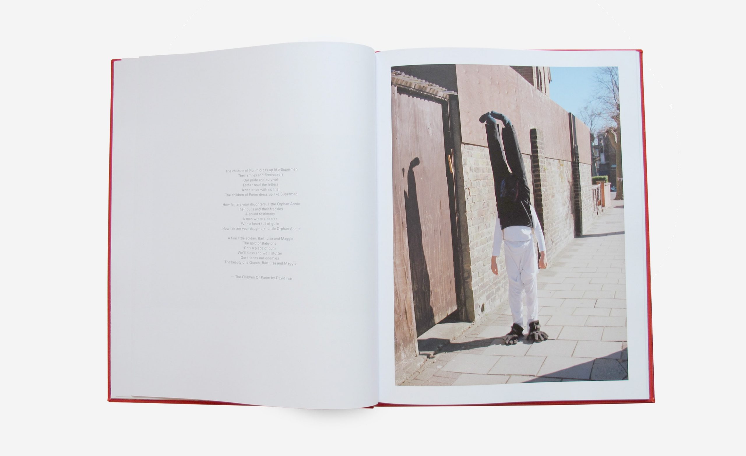 To quote french rabbi Delphine Horvilleur, who signs a text at the end of the book : « Purim has the reputation of being a holiday for children. It is children, besides, that constitute the very matter of these photos even if the truth, in my opinion, is that Purim is an adult holiday. Children, in a way, act like a veil, like the “masks” – in all senses of the word – disguising the holiday, making it up in order to hide the complex questions it raises. The fundamental issue of Purim is the question of appearance and of internal reality. On this day, we read a text called the Megillah of Esther, whose content should practically be censured for underage persons. »