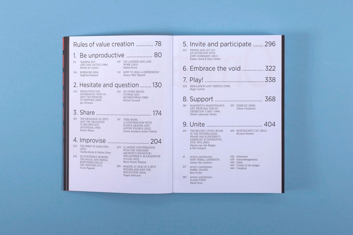 Julieta Aranda & Anton Vidokle, Franco ‘Bifo’ Berardi, Marina van den Bergen & Piet Vollaard, R. Buckminster Fuller, Roger Caillois, Michel de Certeau, Céline Condorelli, Barry Farrell, Michel Foucault, Klaske Havik & Hans Teerds, Anthony Huberman, Charles Jencks & Nathan Silver, Tony Judt, Siegfried Kracauer, Bojana Kunst, Mierle Laderman Ukeles, Marcel Mauss, Evgeny Morozov, Victor Papanek, Jan Ritsema, Richard Sennett, Viktor Shklovsky, Beverley Skeggs, Jan Verwoert.