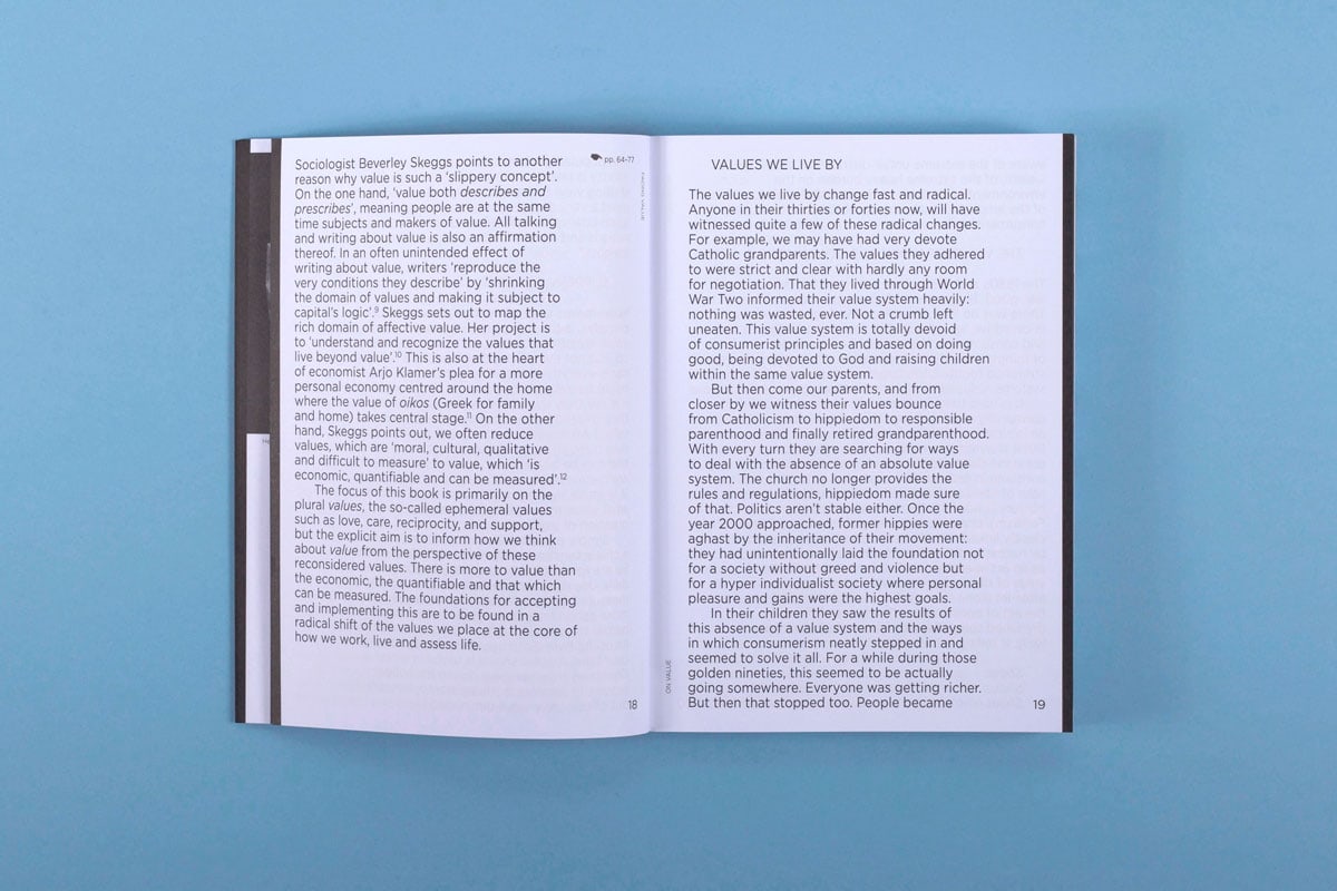 By presenting an anthology of texts by architects, artists, philosophers, scientists, historians and economists, many image essays and three artist’s contributions this book aims to rethink the scope and language of the current value system.