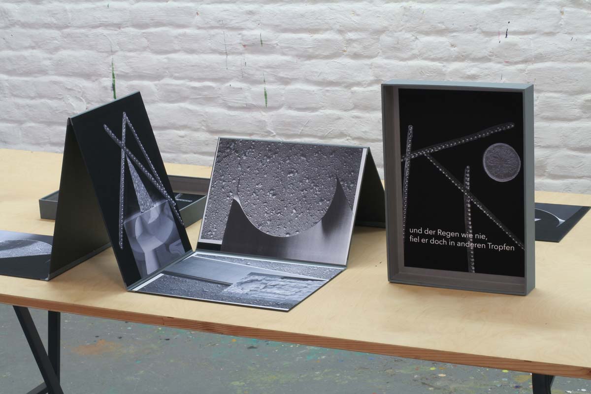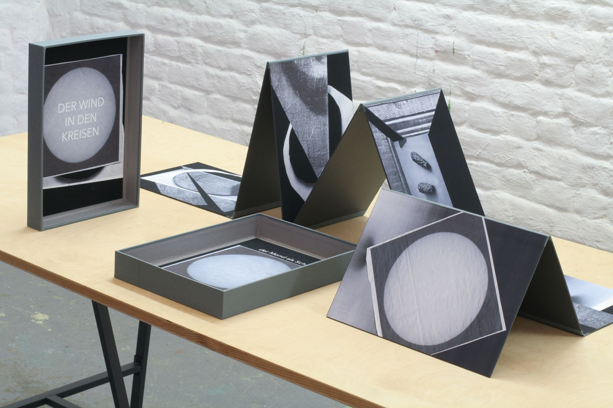 Another, more active approach is conceivable: the viewer takes the folded book in his hand and opens the box. Opening and turning the individual pages is long-winded; the pages are opened and closed in different directions.