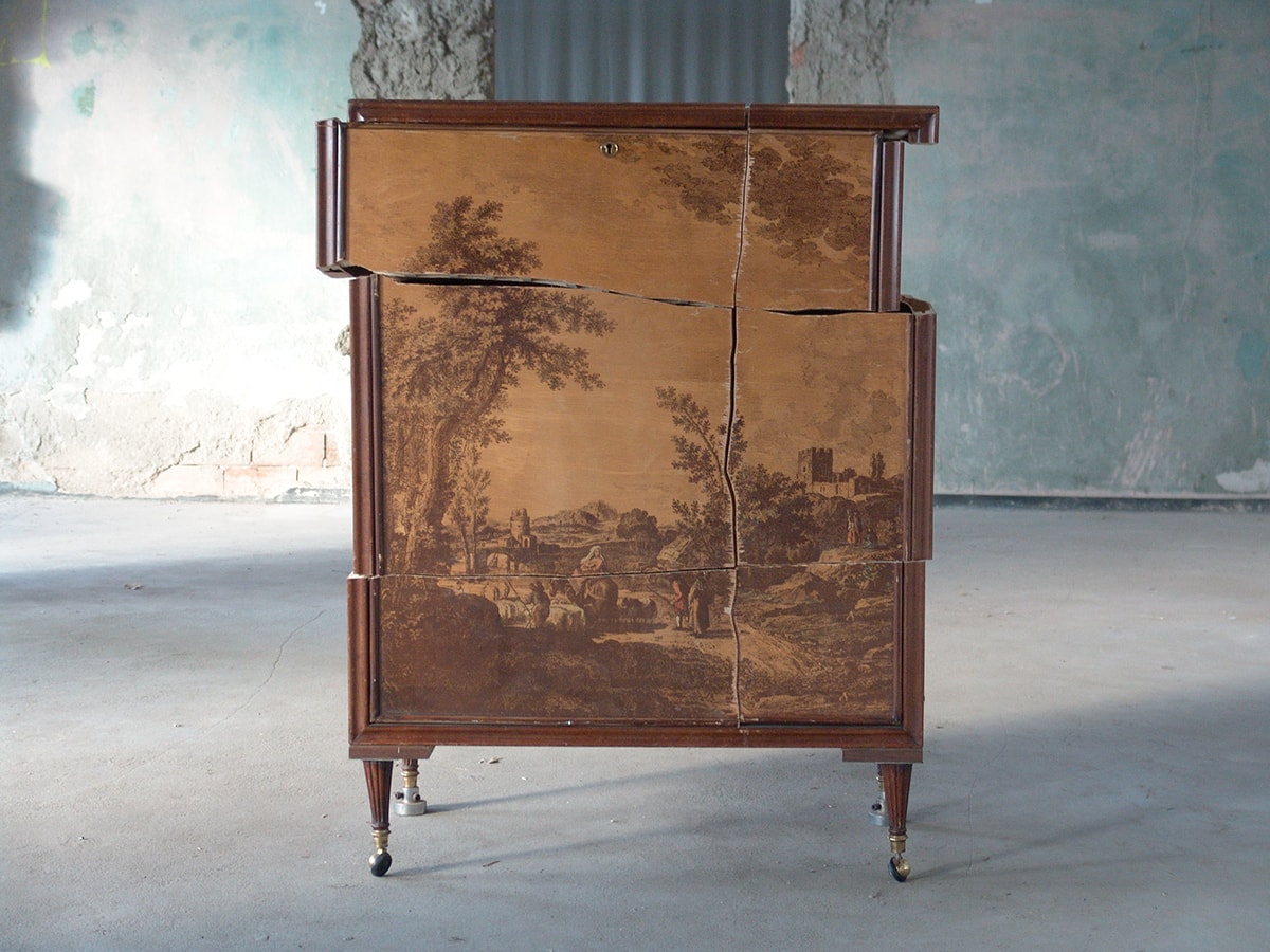 By using a wide range of media including sculpture, painting, installation and photography, Vedovamazzei’s humorous and poignant works explore the ways in which desire and affection might couple and uncouple images, objects and texts. Their pieces often give form to literal misreadings, including the translation of a movie into a sculpture, the creation of a narrative around a flawed object, or the depiction of an impossible romantic whim.